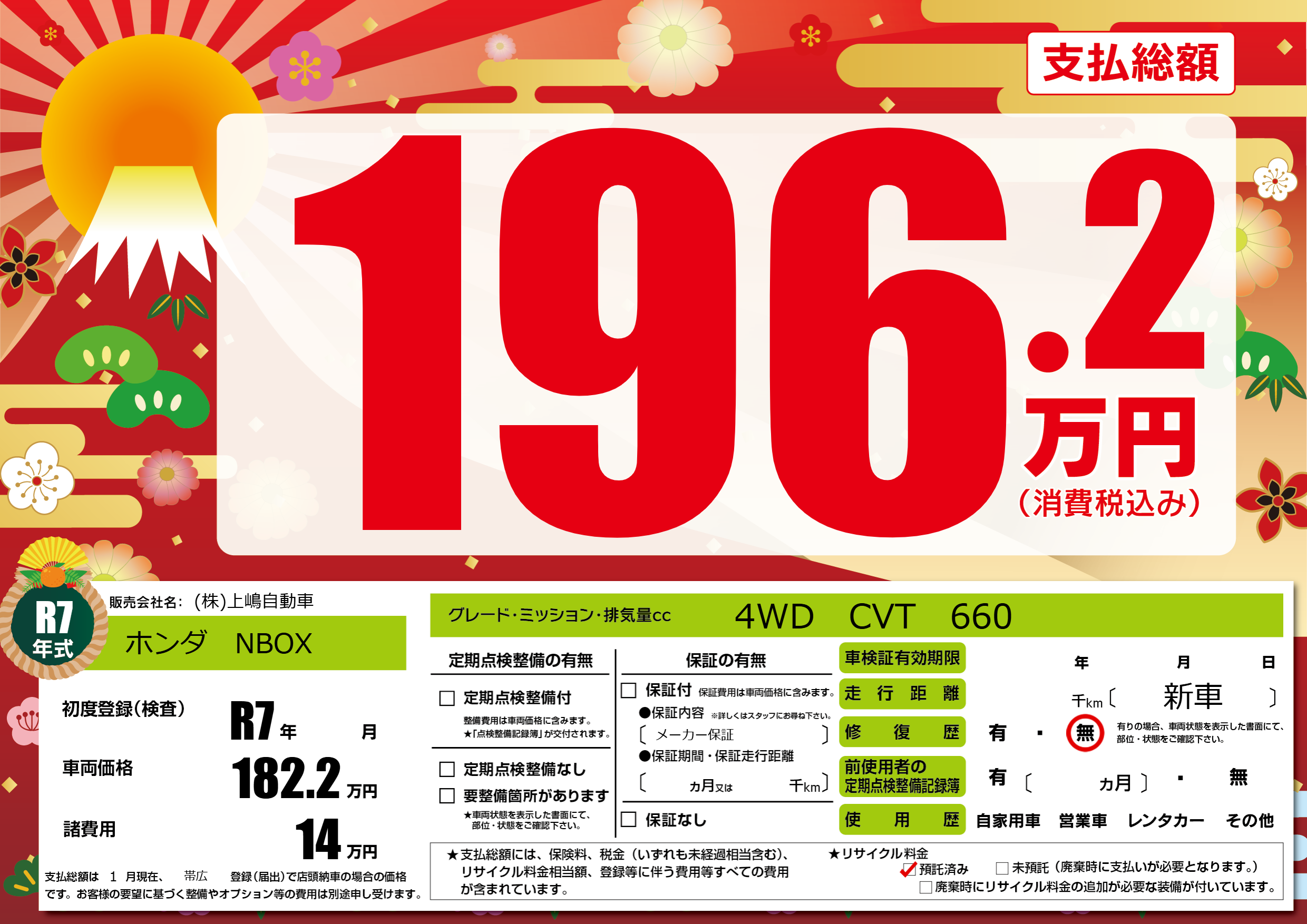 | 車名 | ホンダ NBOX | グレード ミッション 排気量 |