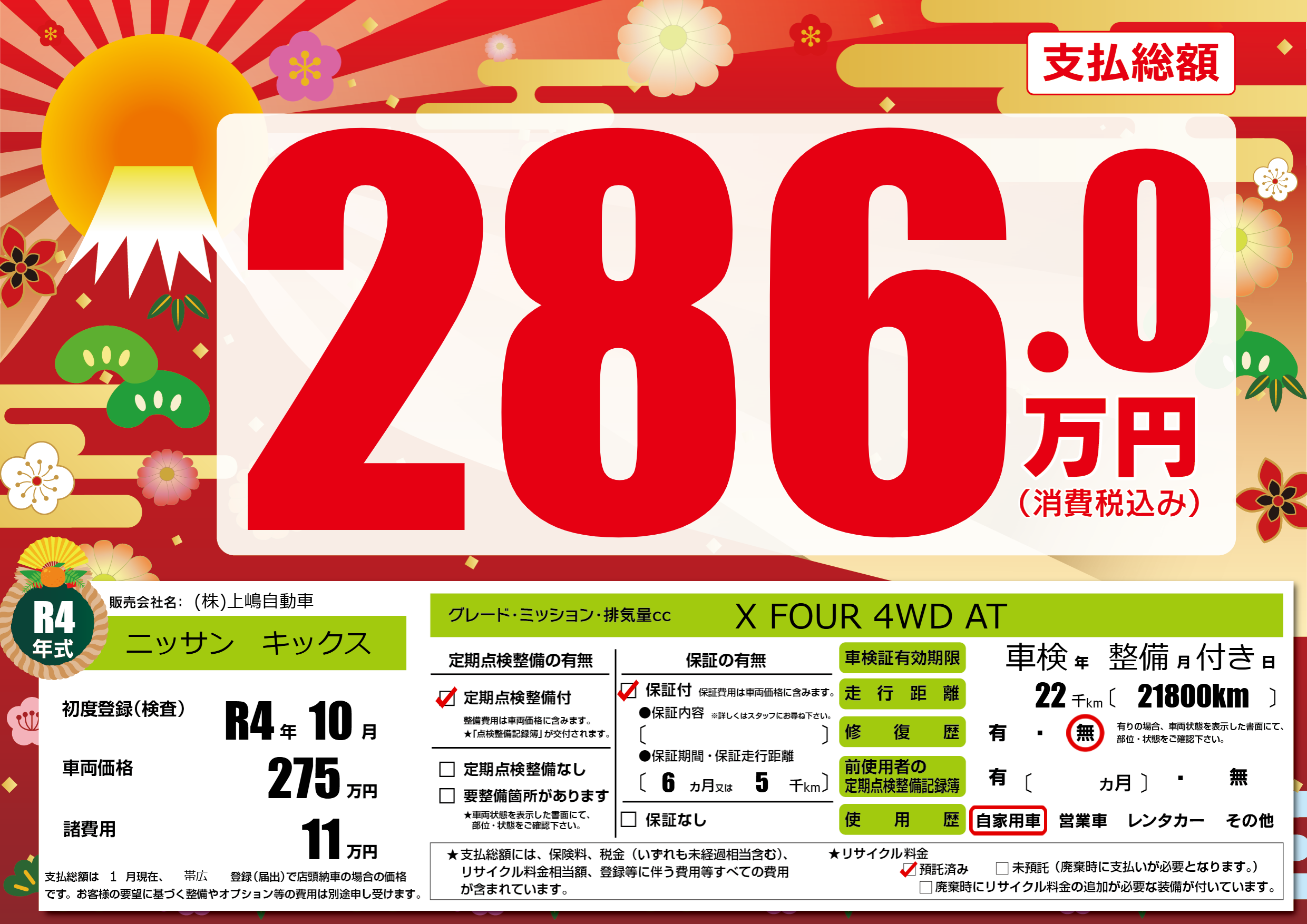 | 車名 | ニッサン キックス | グレード ミッション 排気量 |