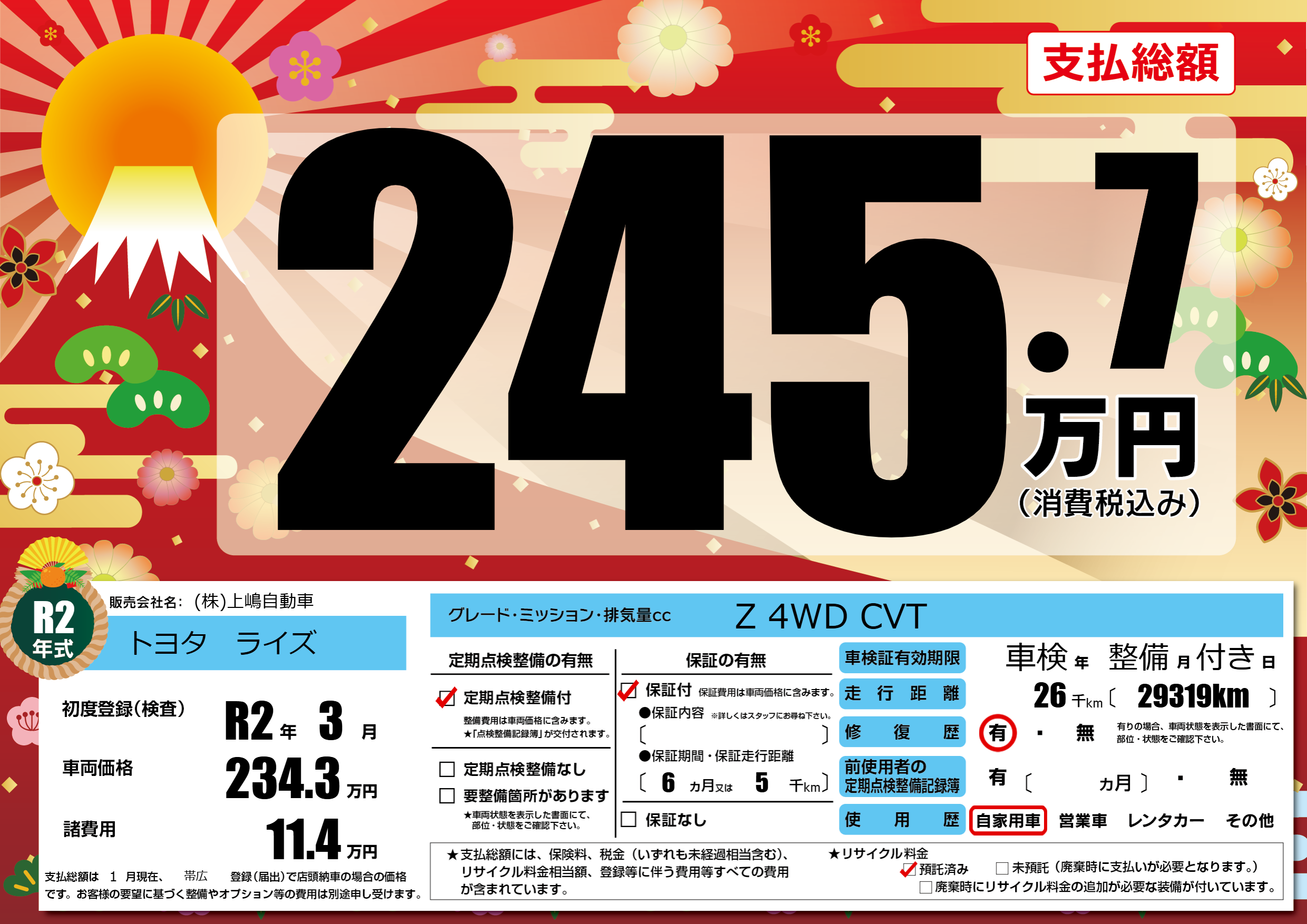 | 初年度登録 | R2年3月 | ||