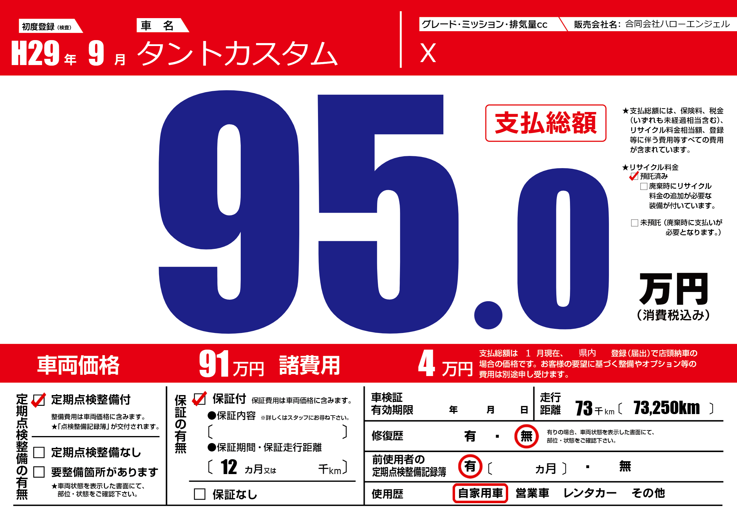 | 車名 | タントカスタム | グレード ミッション 排気量 |