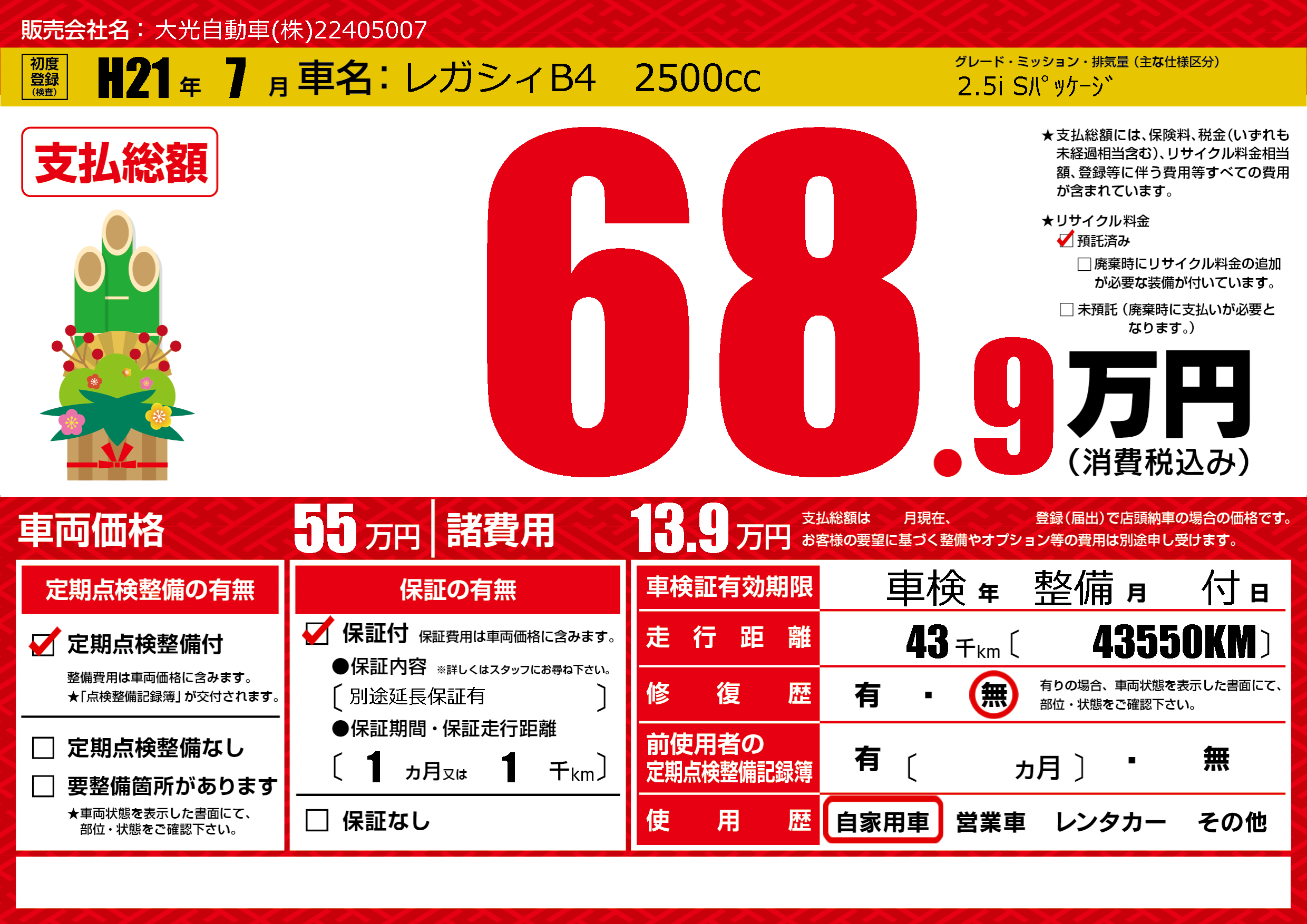 | 定期点検整備 | 定期点検整備あり | ||