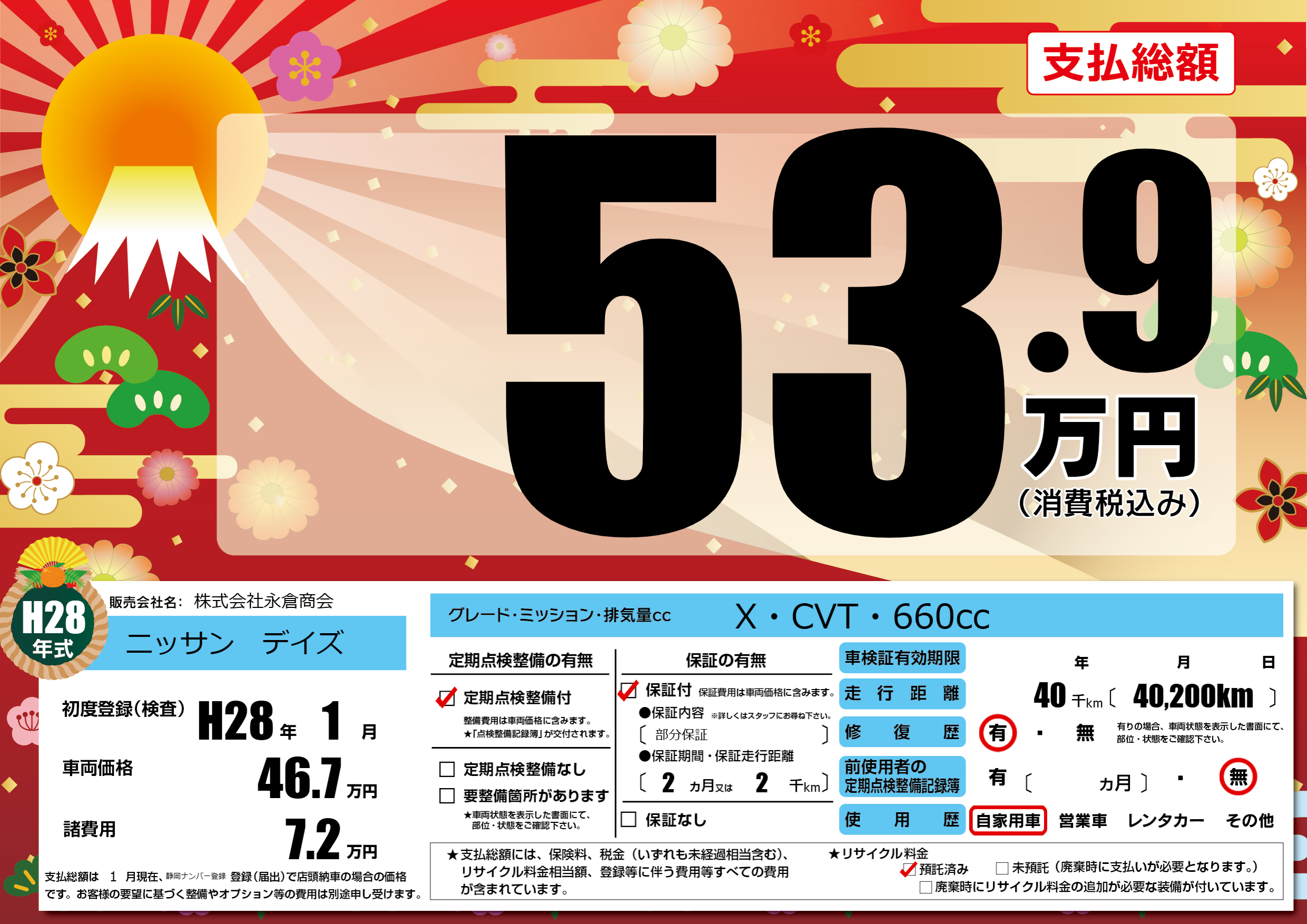 | 走行キロ | 4万km | ||