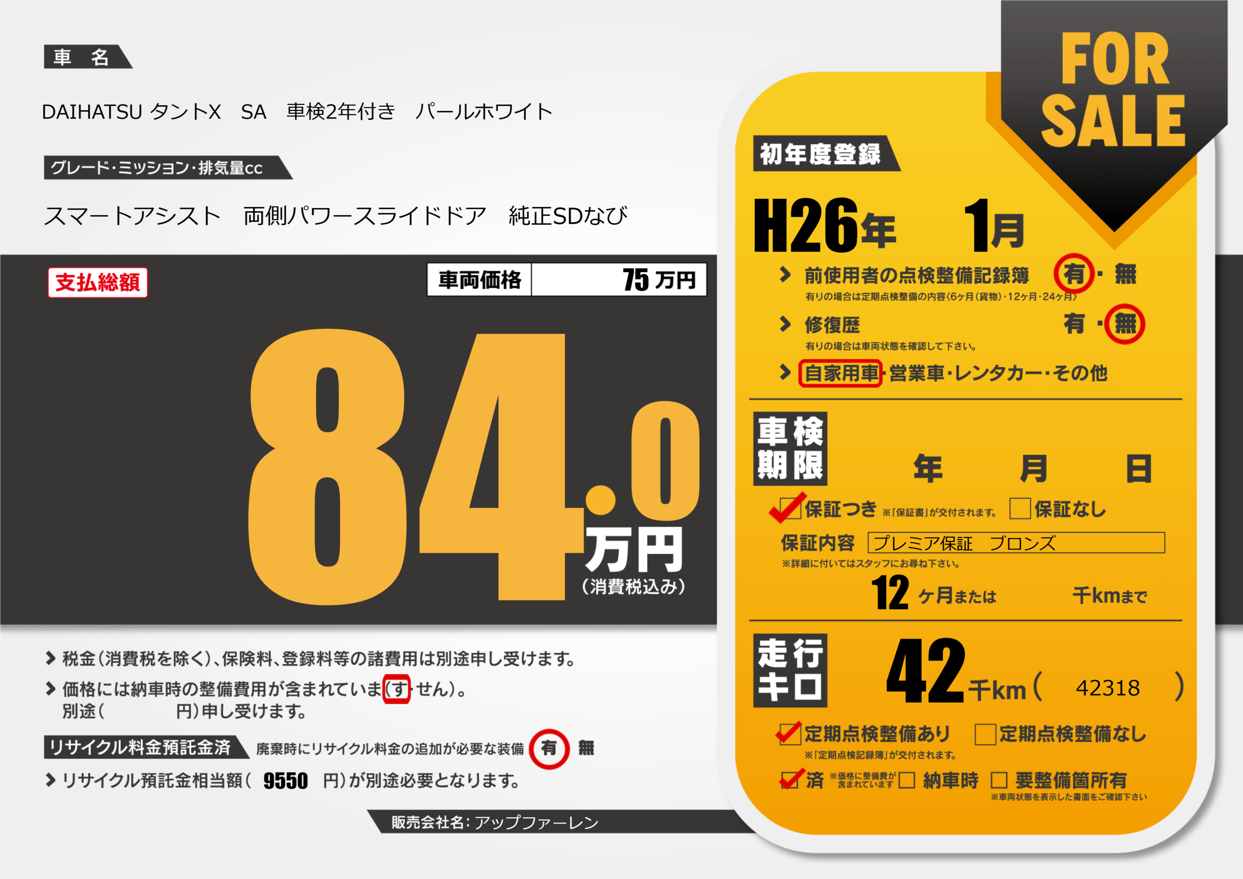 | 定期点検整備 | 定期点検整備あり 定期点検整備済み | ||