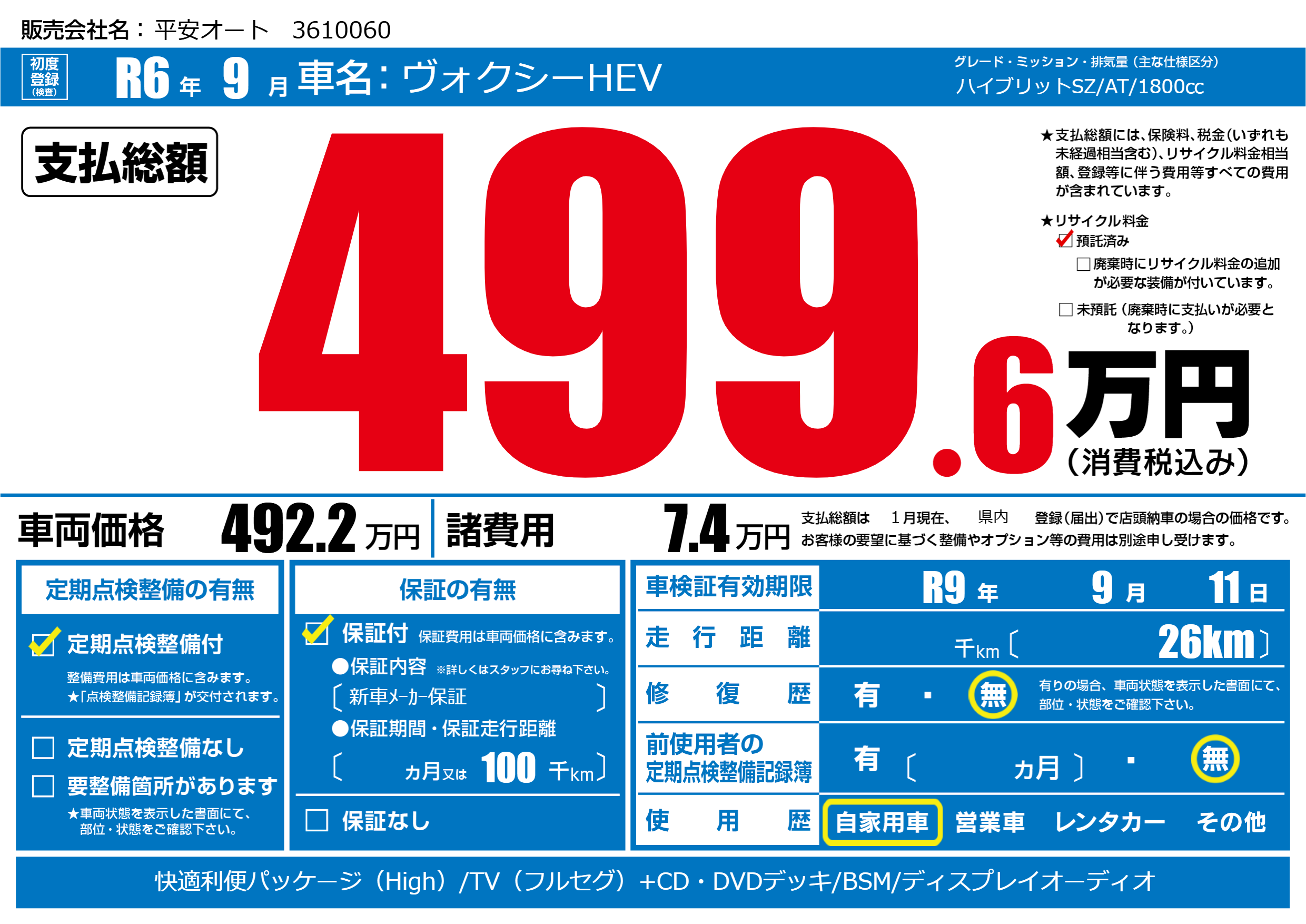 | 走行キロ | - | 初年度登録 | R6年9月 |