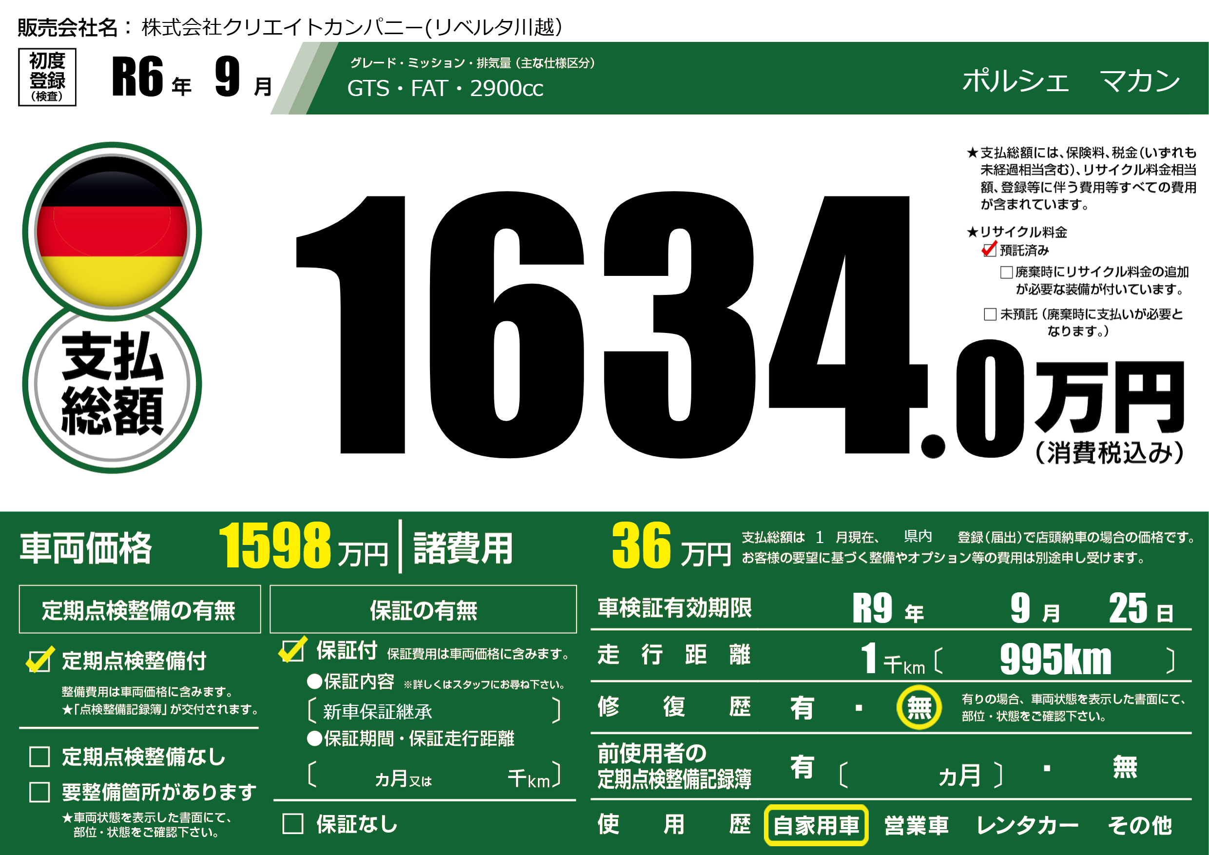 なし | 車検制限 | R9年9月25月 |