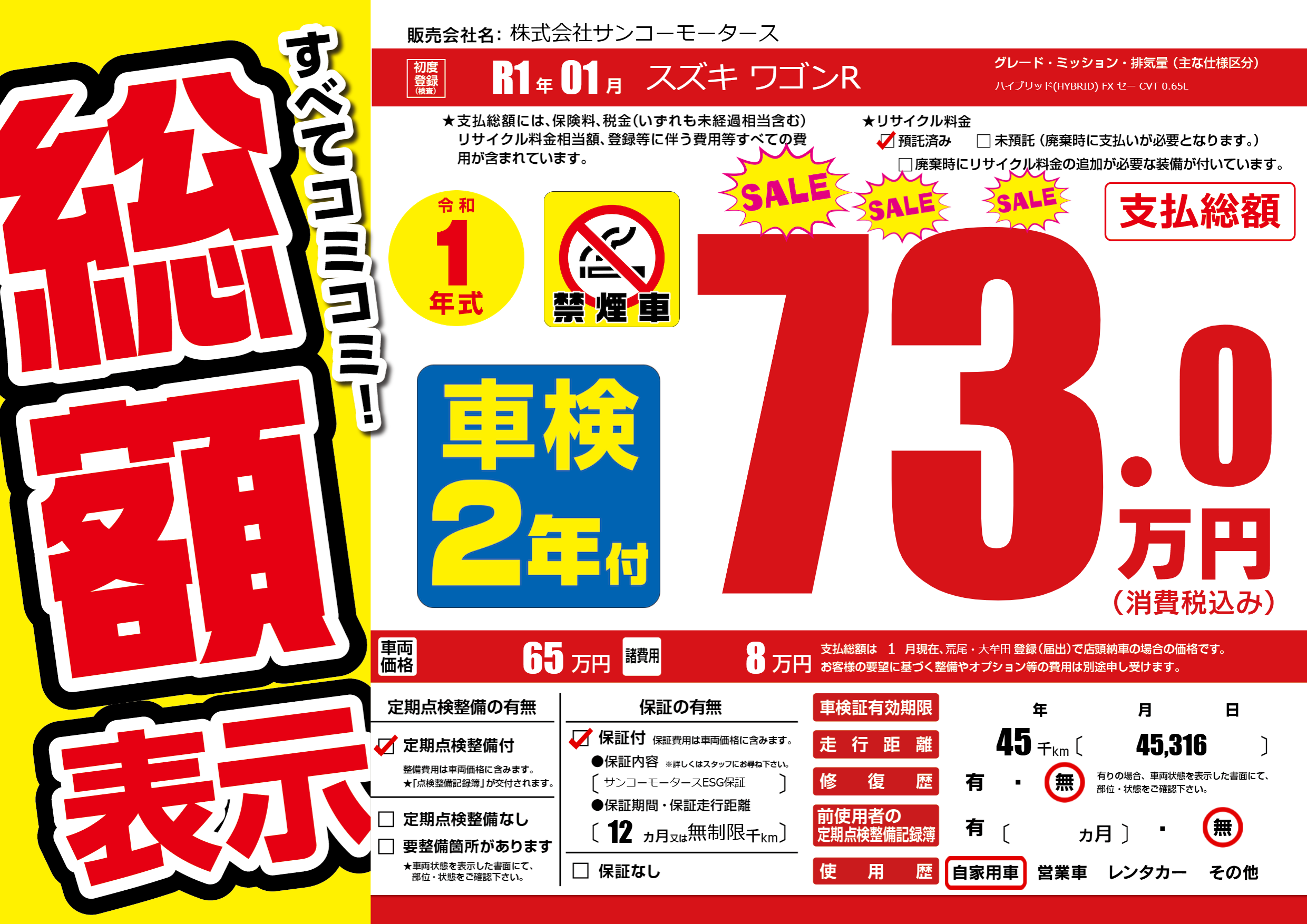 保証付き 保証内容(サンコーモータースESG保証) 12ヶ月または無制限千km |