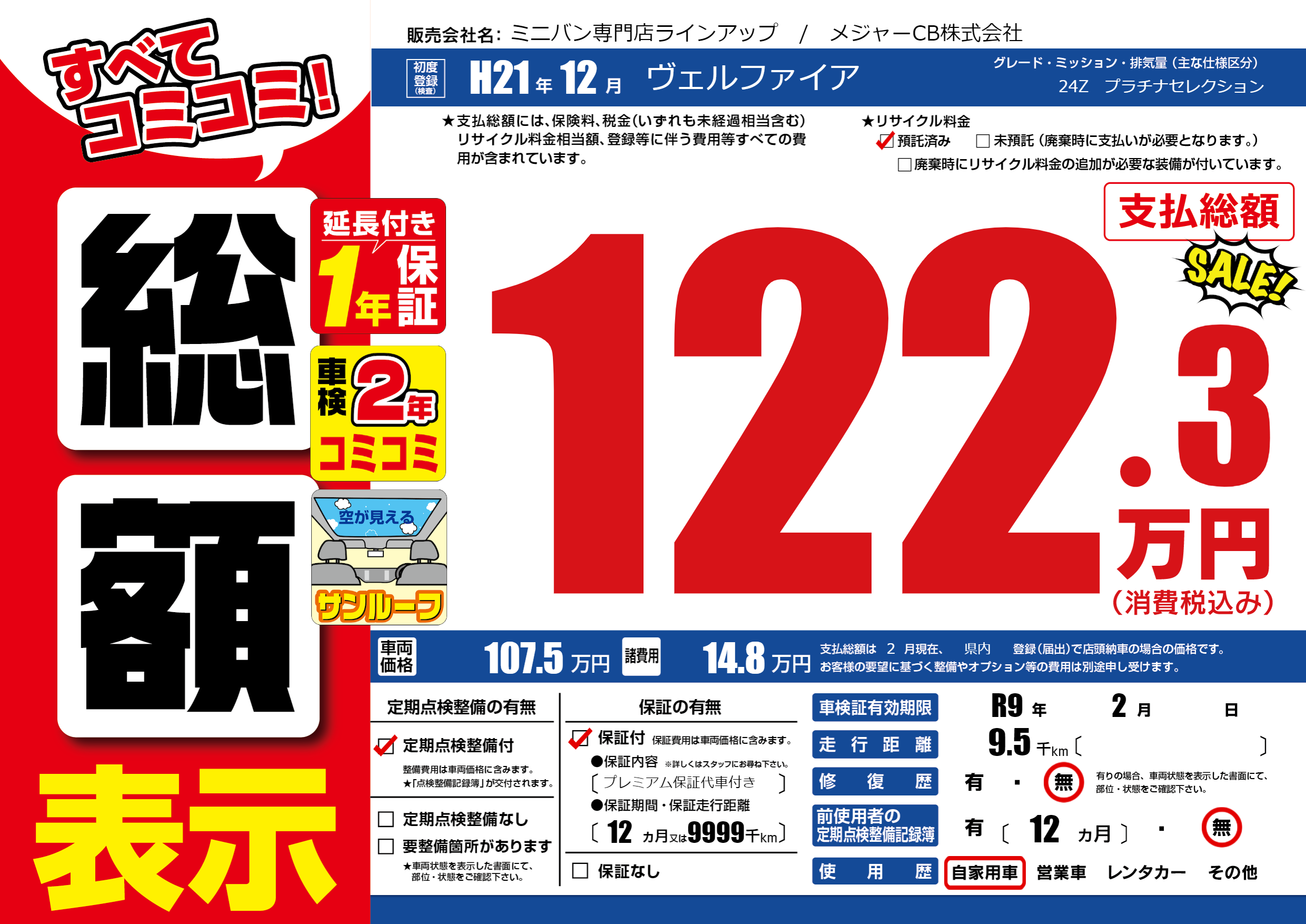 | 車名 | ヴェルファイア | グレード ミッション 排気量 |