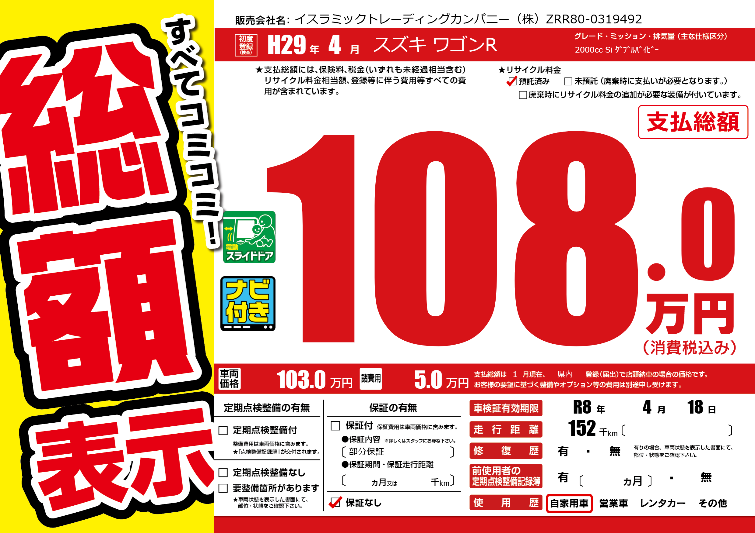 なし | 車検制限 | R8年4月18月 |