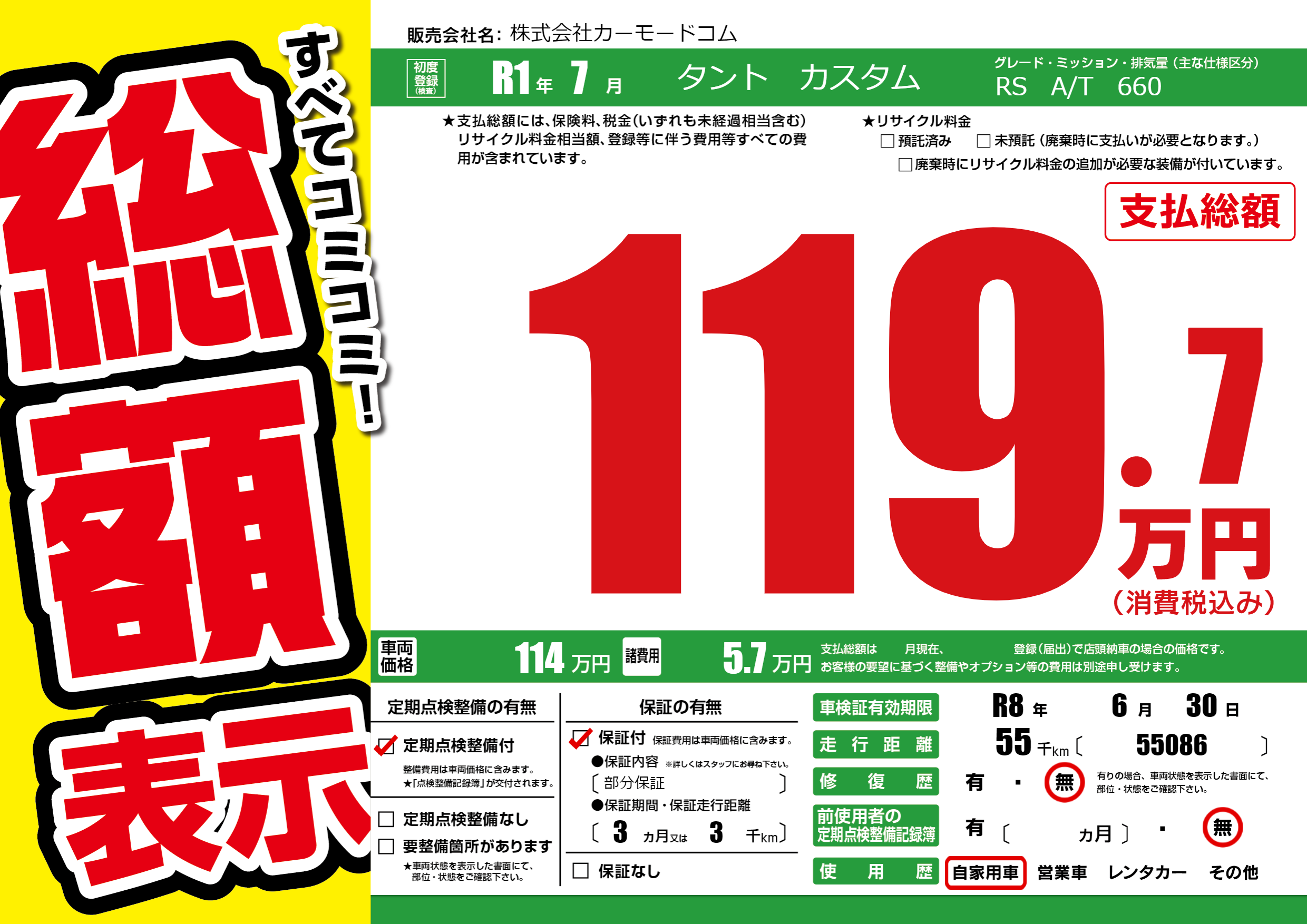 なし | 車検制限 | R8年6月30月 |