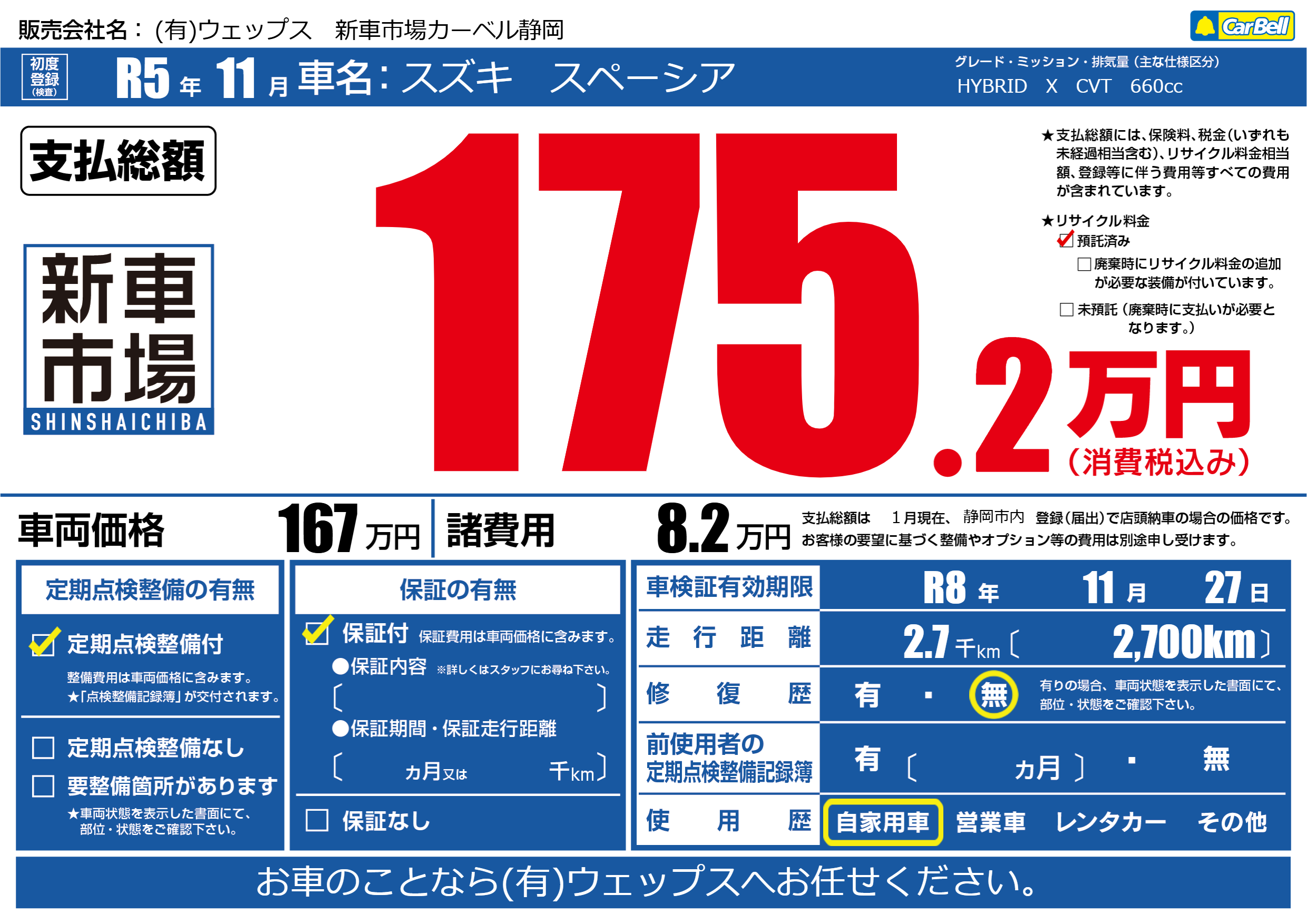 車検制限 R8年 11月 27日