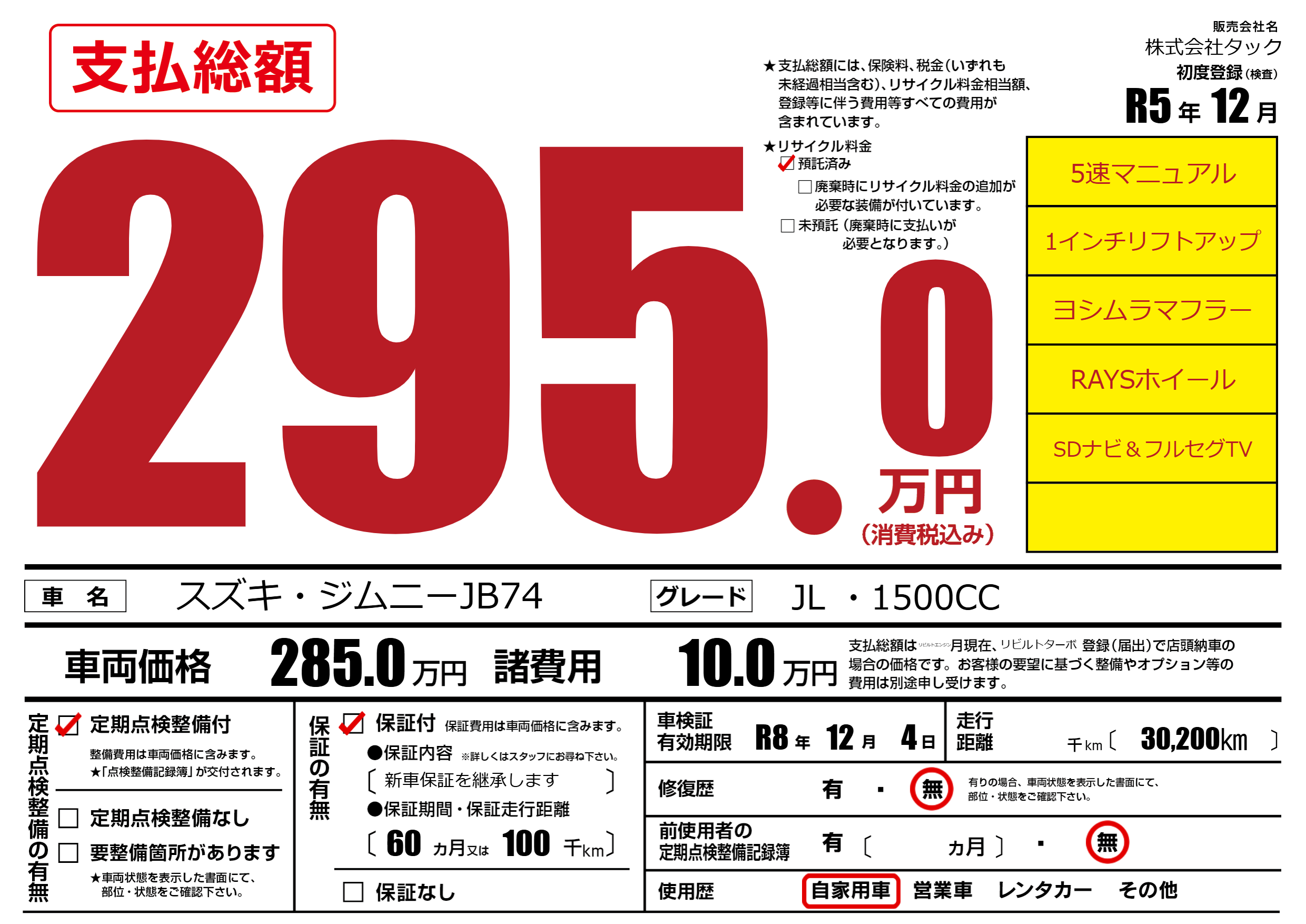 | 走行キロ | - | 初年度登録 | R5年12月 |