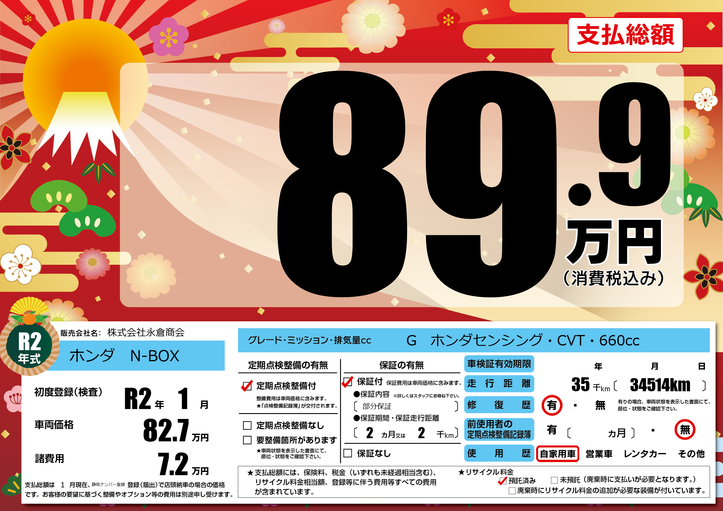 | 車名 | ホンダ N-BOX | グレード ミッション 排気量 |