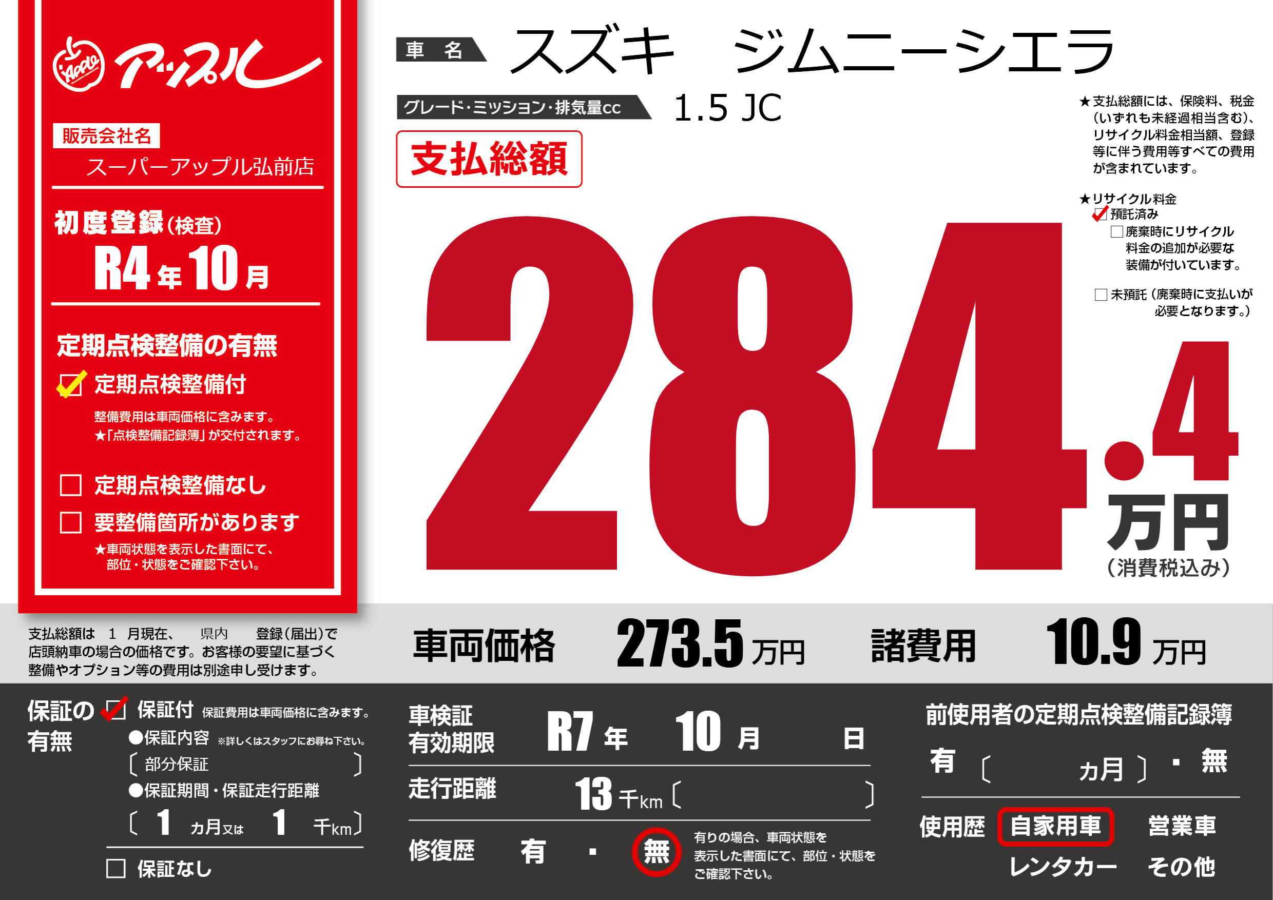 | 車検制限 | R7年 10月 - 日 | ||
