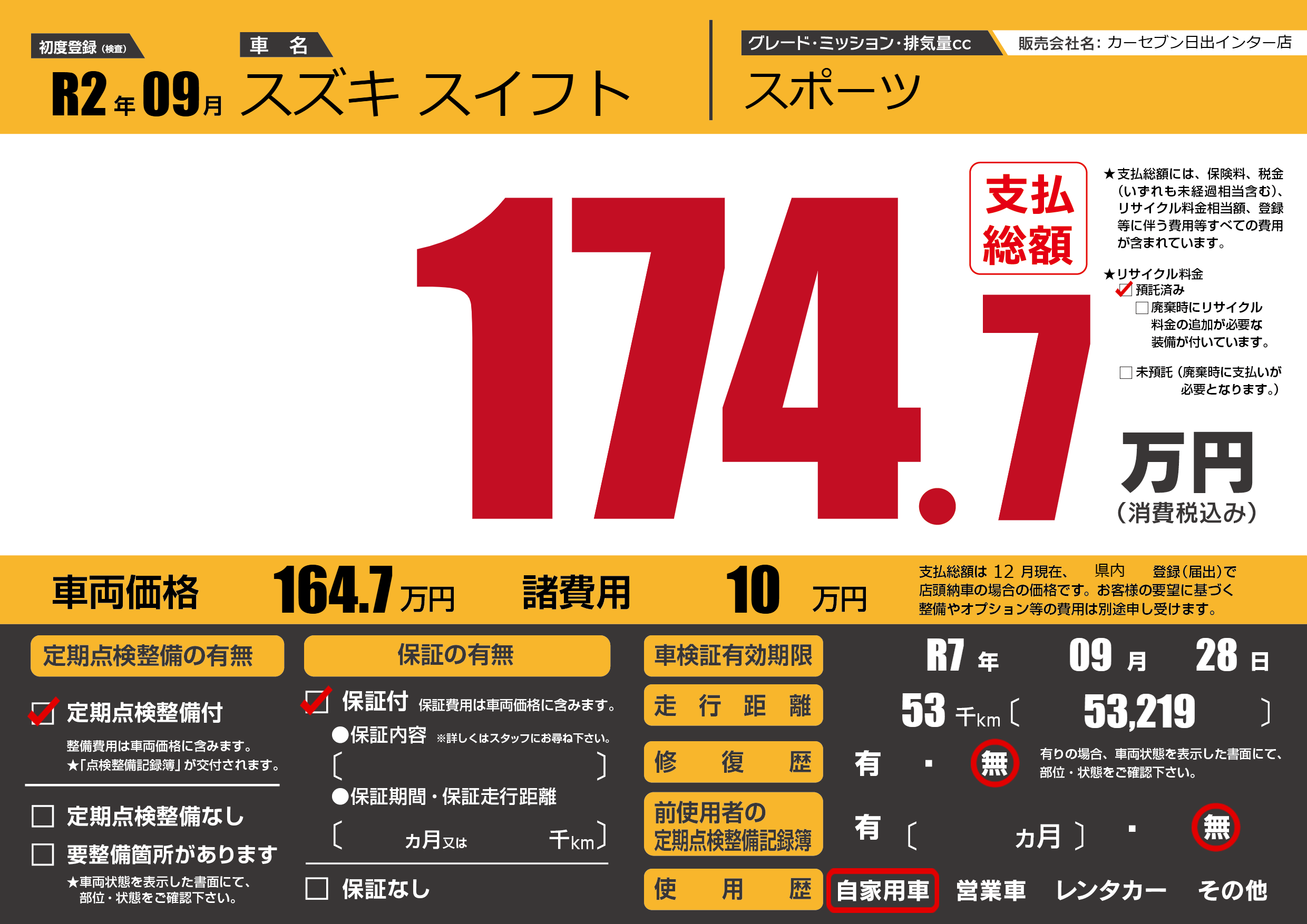 | 車名 | スズキ スイフト | グレード ミッション 排気量 |