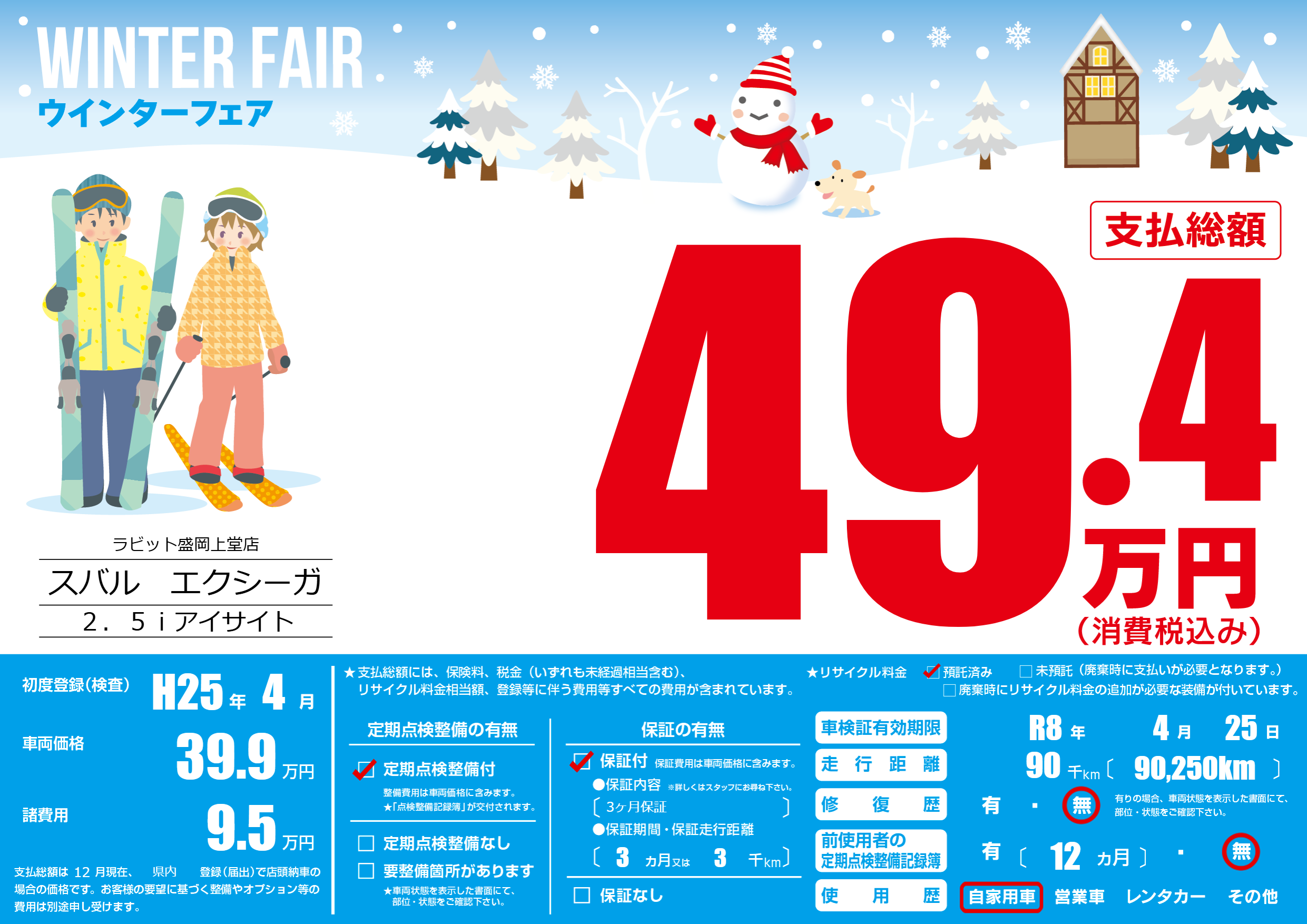 | 走行キロ | 9万km | 初年度登録 | H25年4月 |