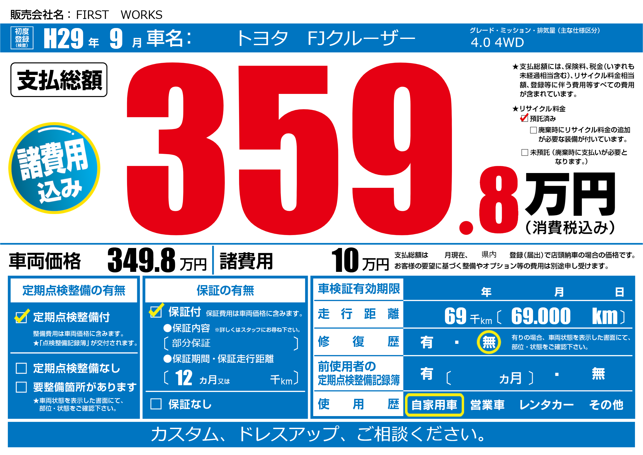 | 車名 | トヨタ FJクルーザー | グレード ミッション 排気量 |