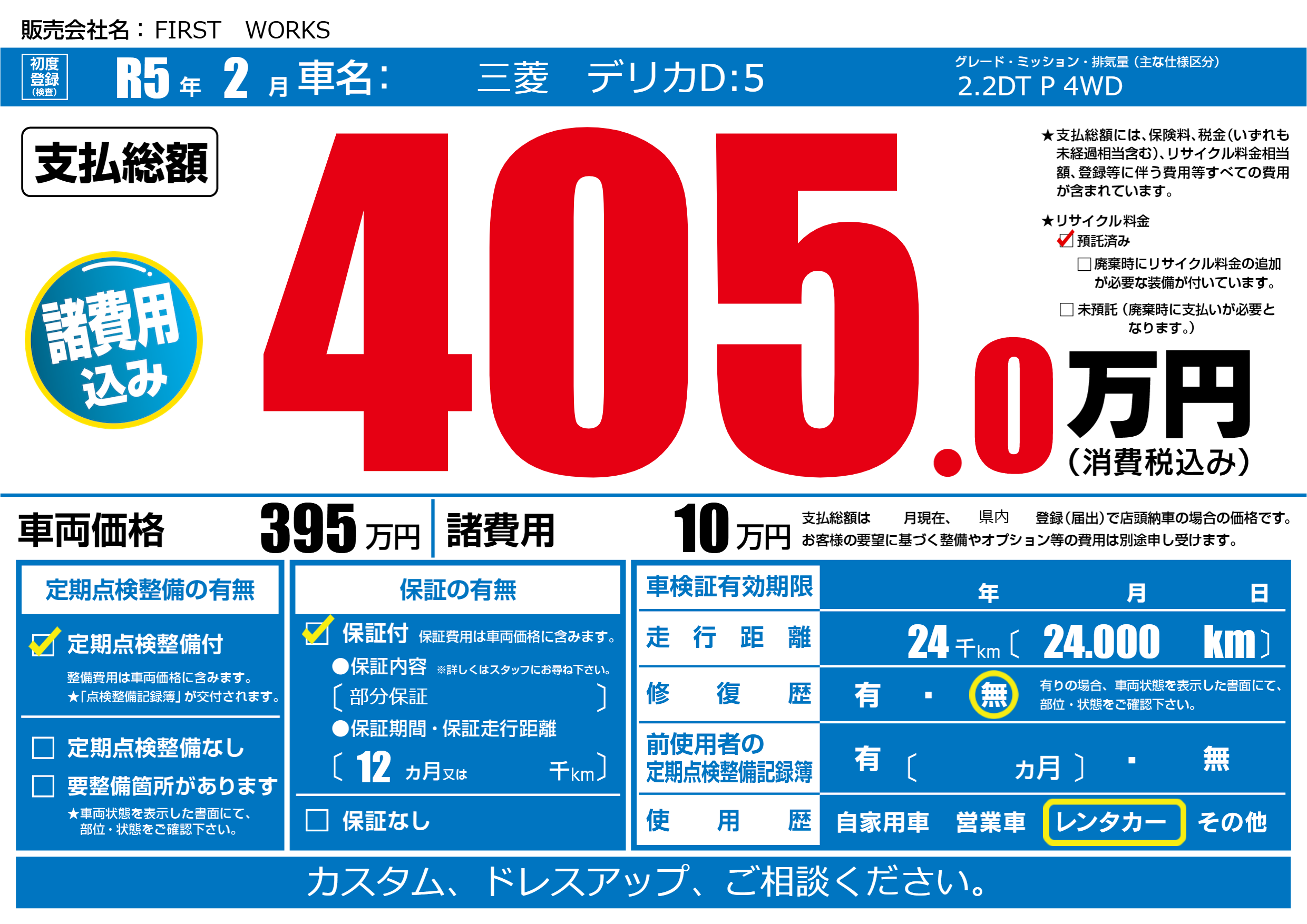 | 納車時の 整備費用 |