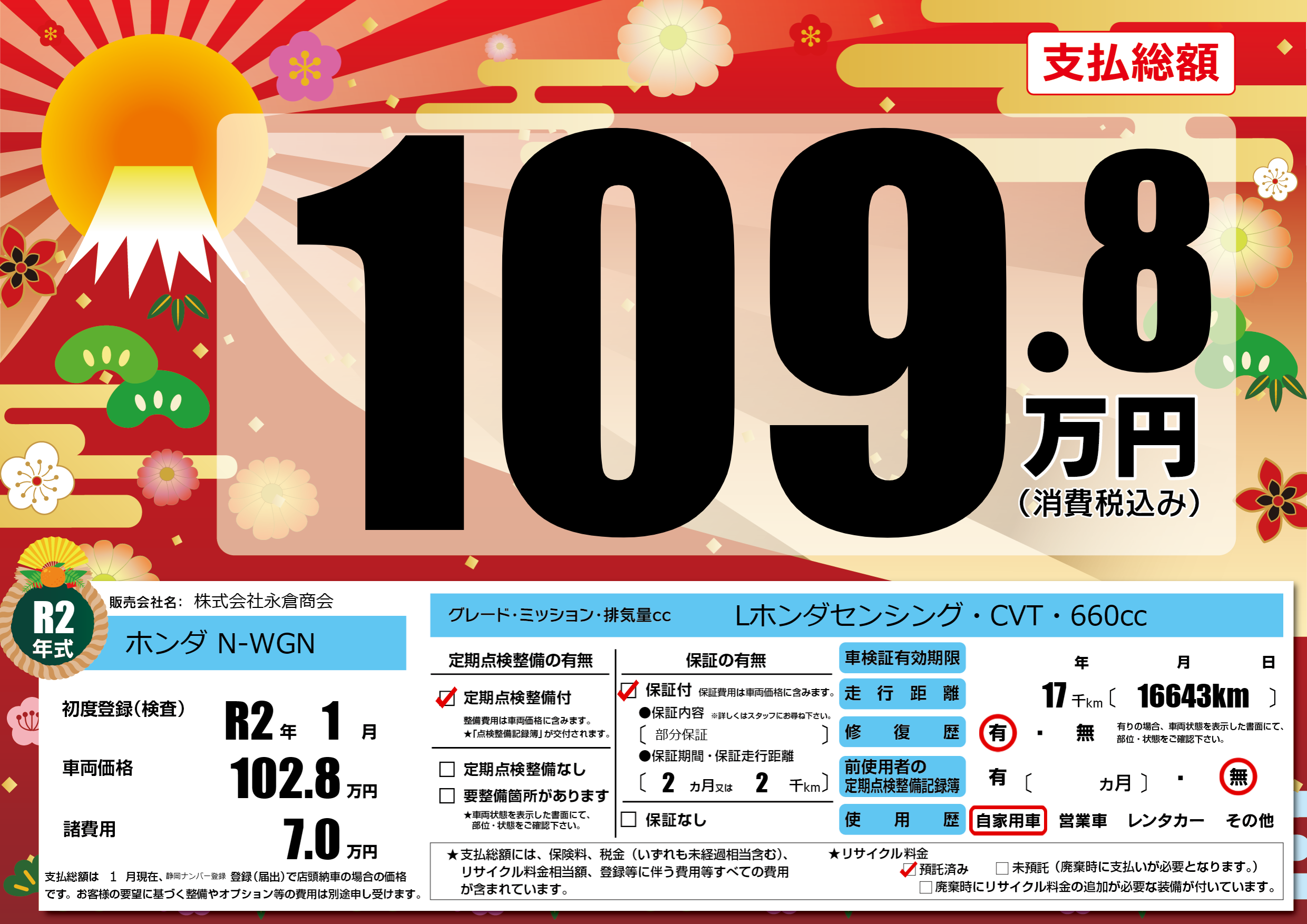 | 車名 | ホンダ N-WGN | グレード ミッション 排気量 |