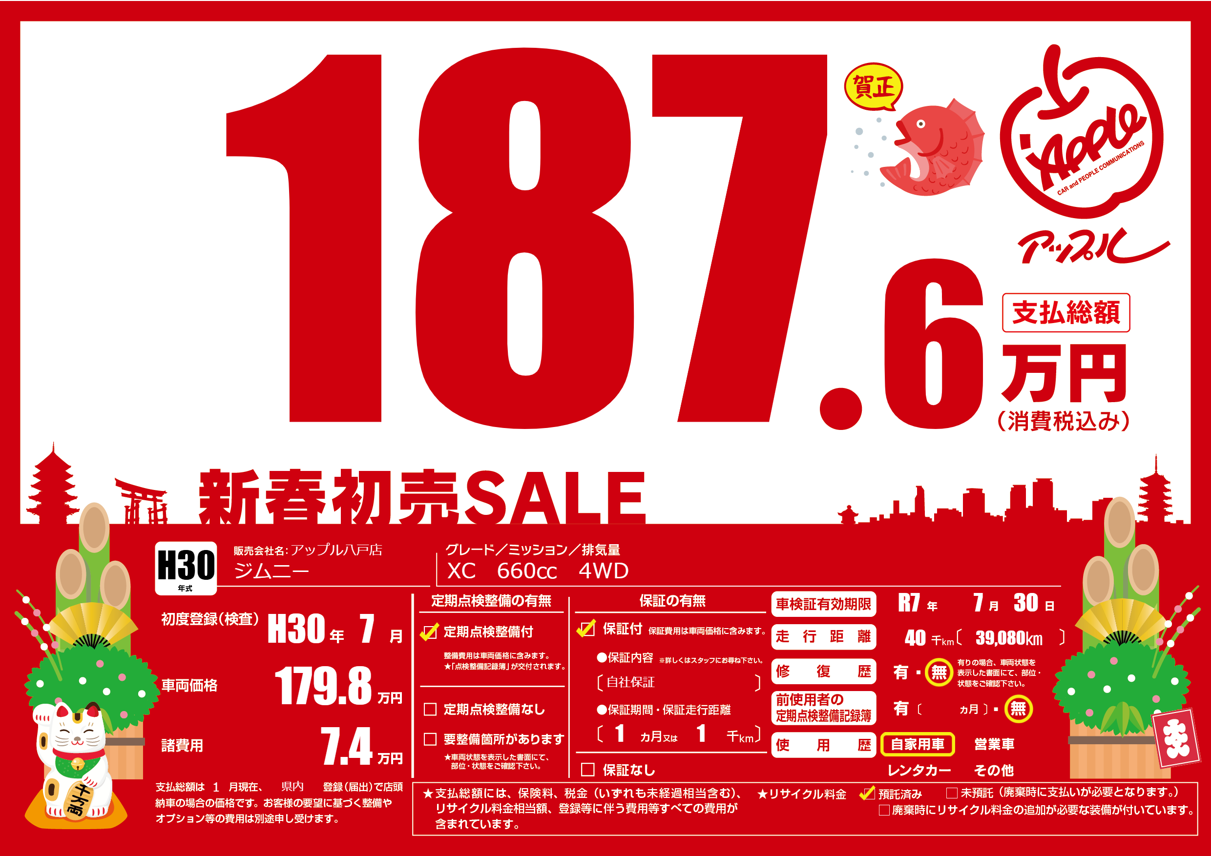 | 車検制限 | R7年 7月 30日 | ||