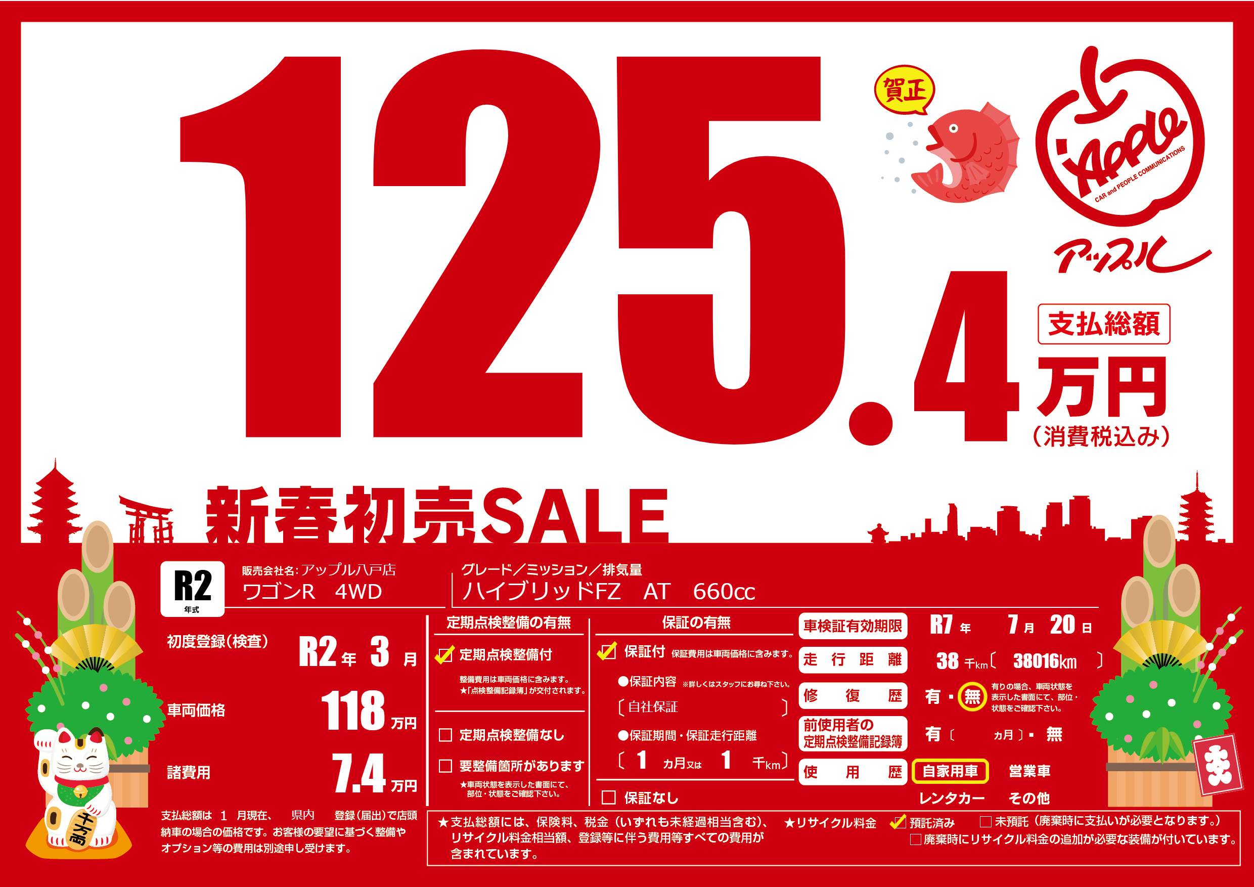 | 車検制限 | R7年 7月 20日 | ||