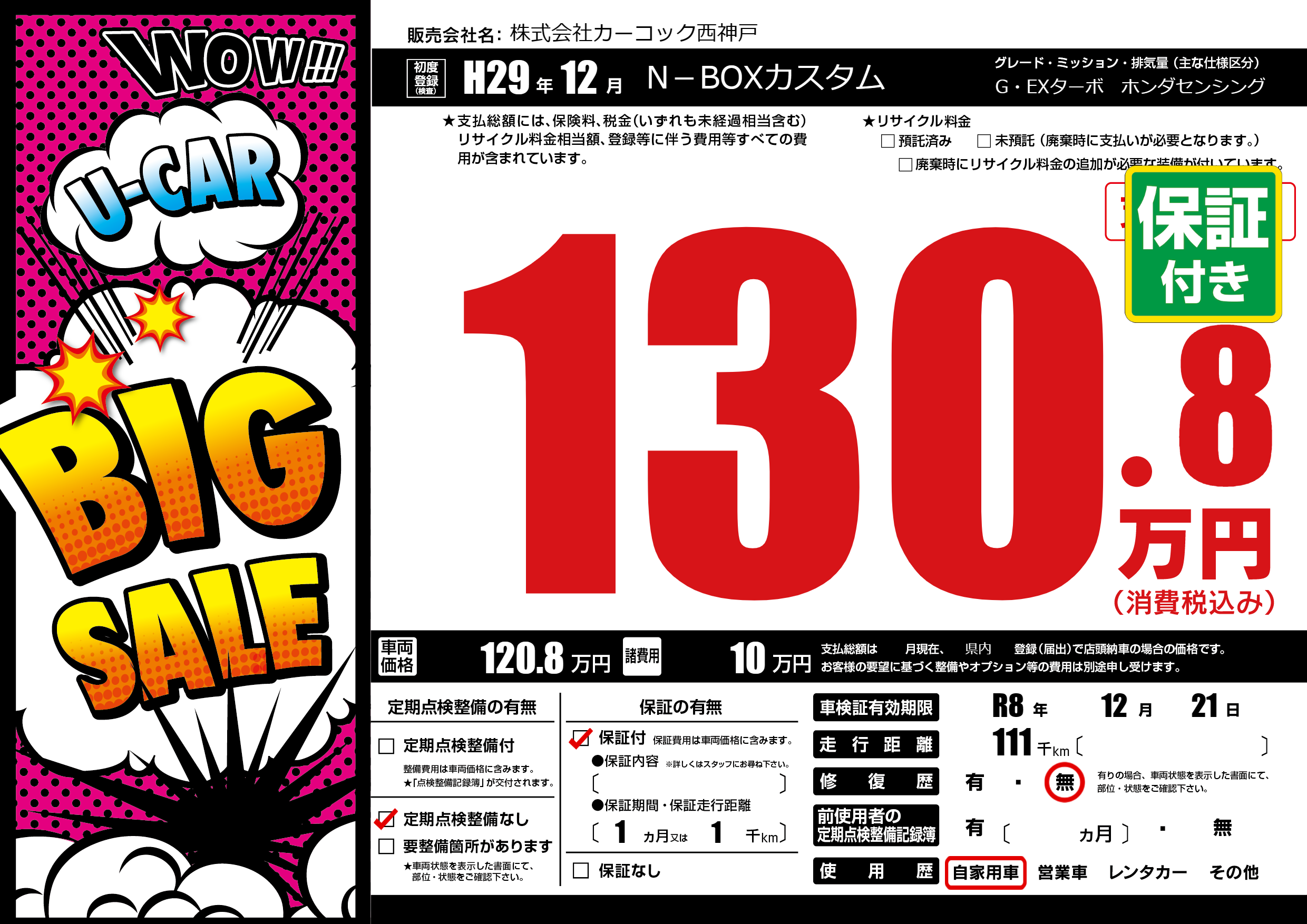| 車名 | N-BOXカスタム | グレード ミッション 排気量 |