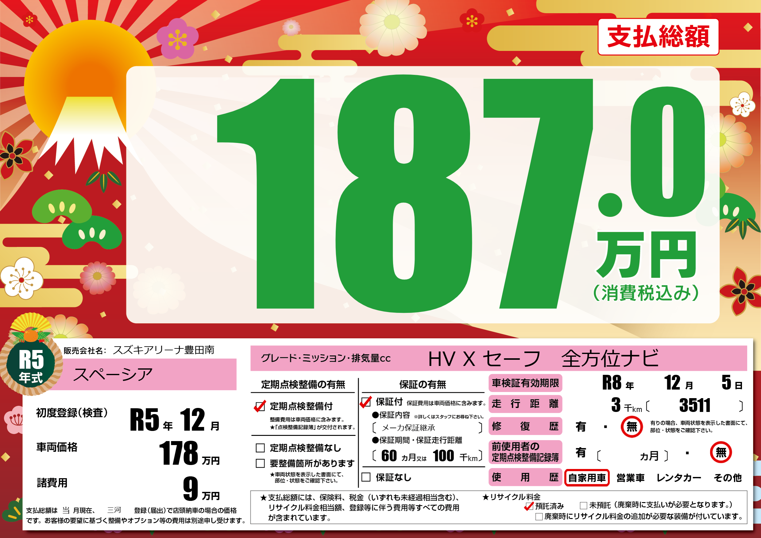 なし | 車検制限 | R8年12月5月 |