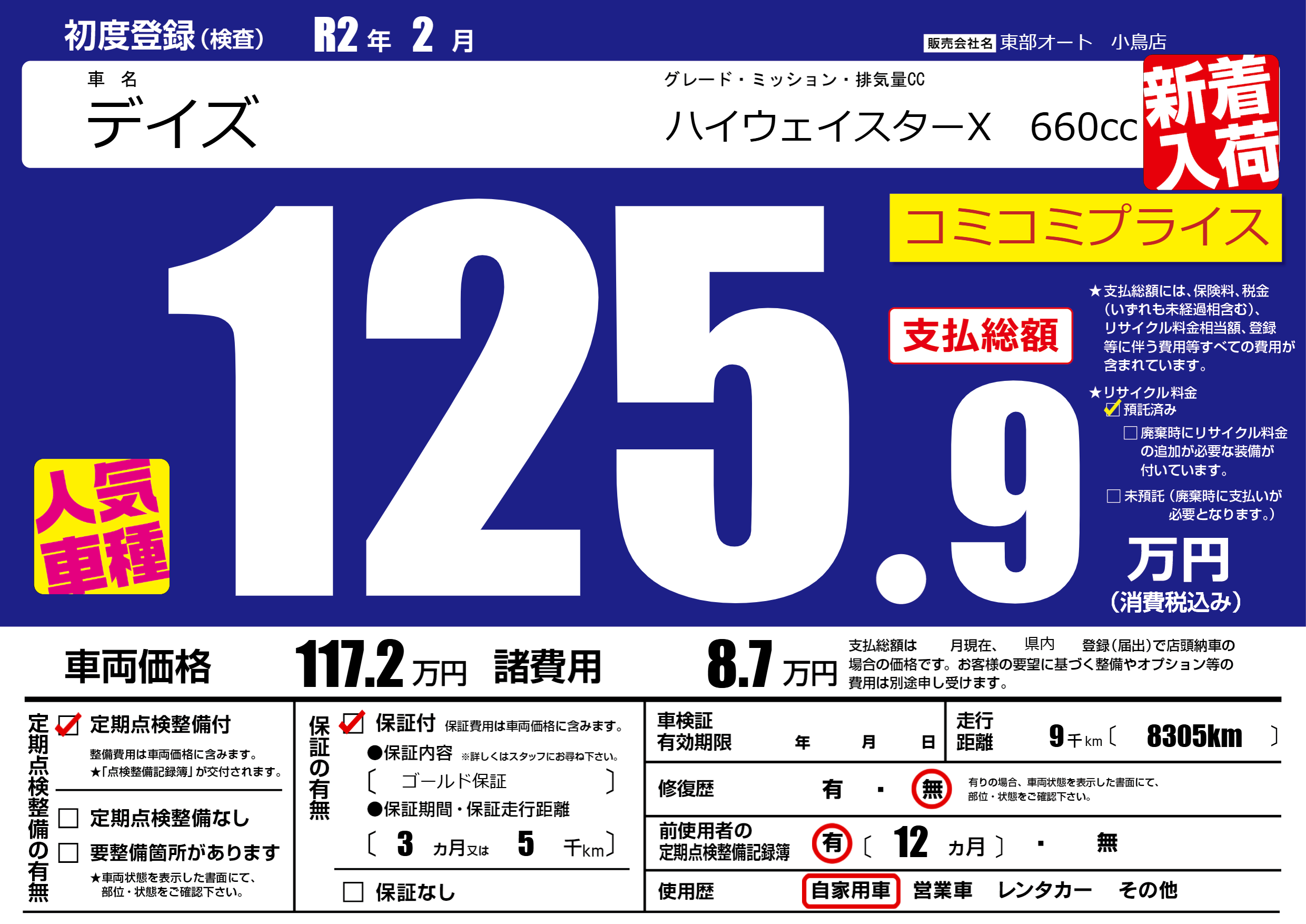 | 車名 | デイズ | グレード ミッション 排気量 |
