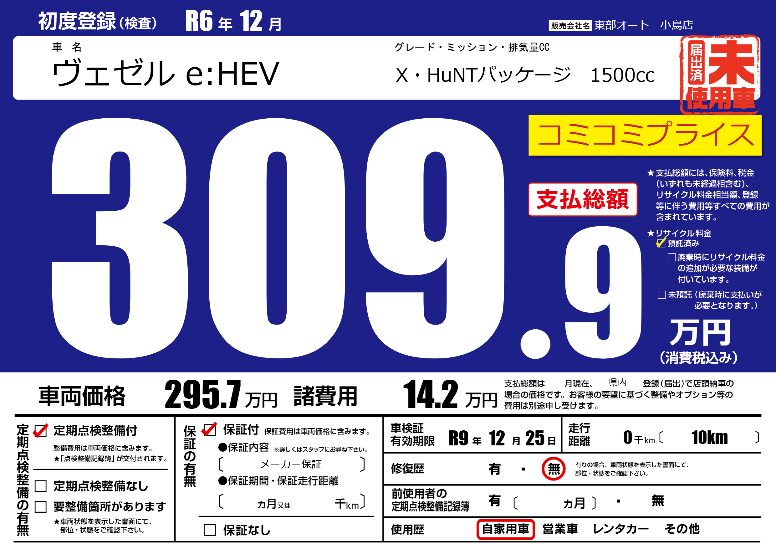 なし | 車検制限 | R9年12月25月 |