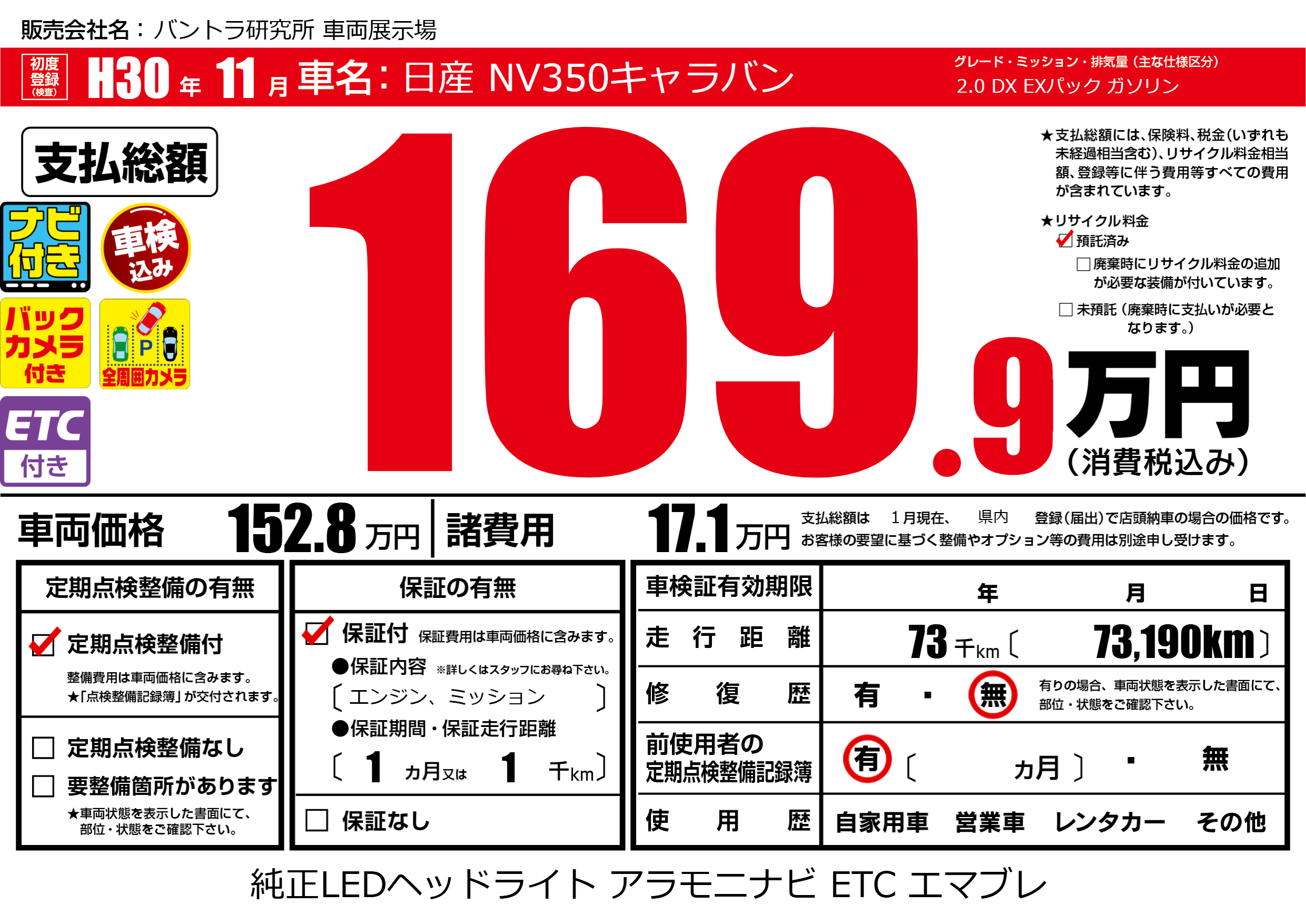 | 走行キロ | 7.3万km | 初年度登録 | H30年11月 |