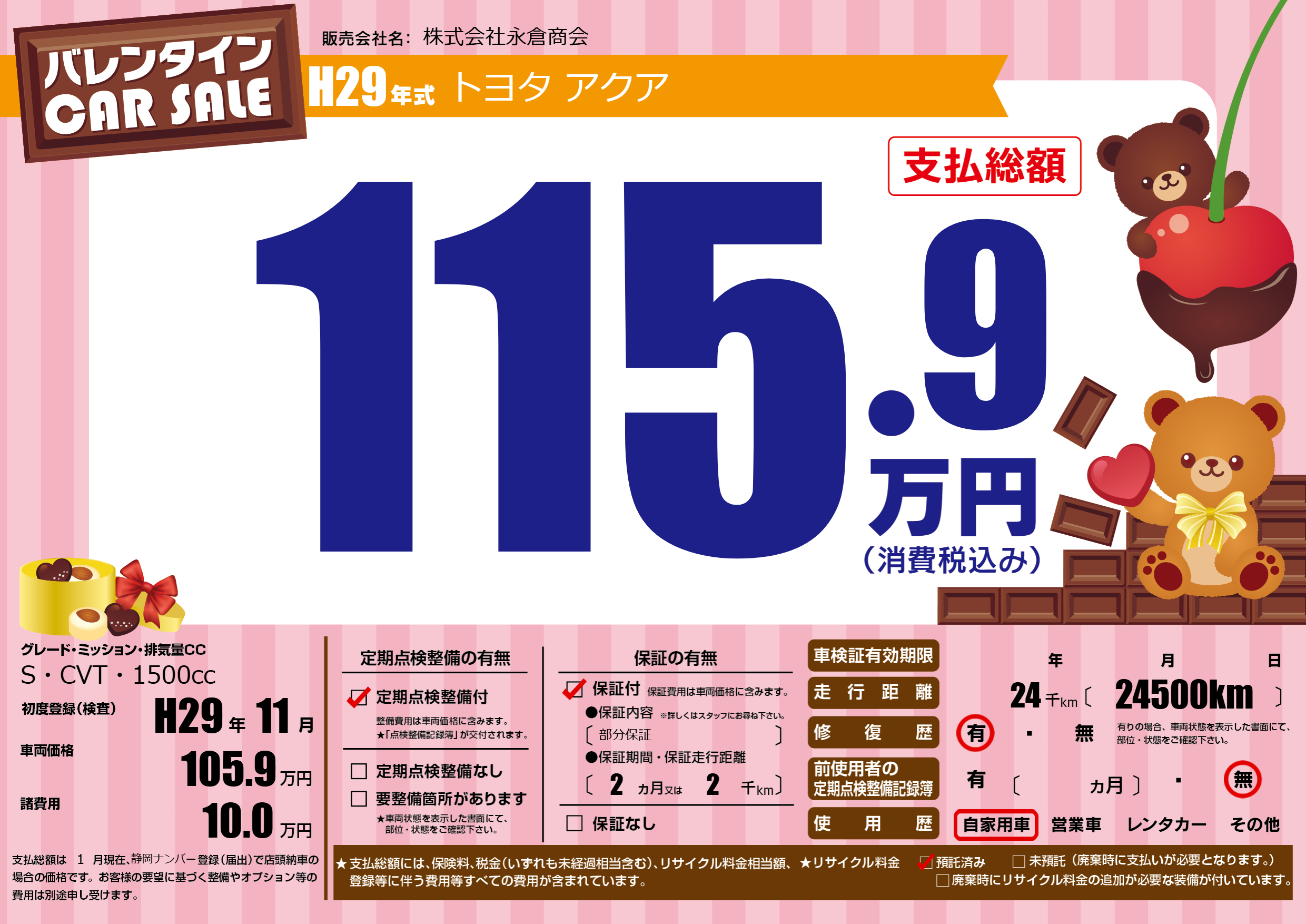 | 走行キロ | 2.4万km | 初年度登録 | H29年11月 |