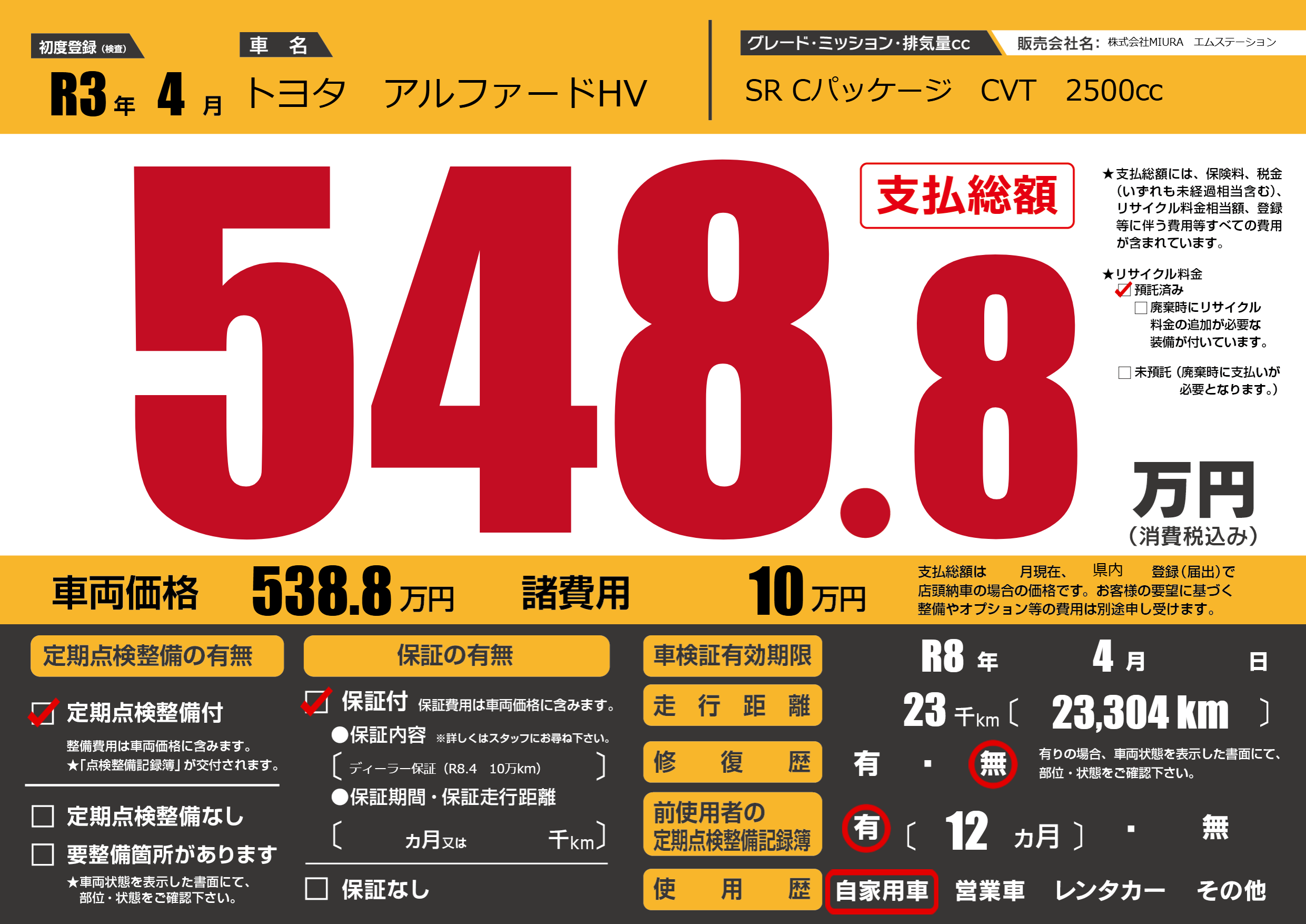 | 車検制限 | R8年 4月 - 日 | ||