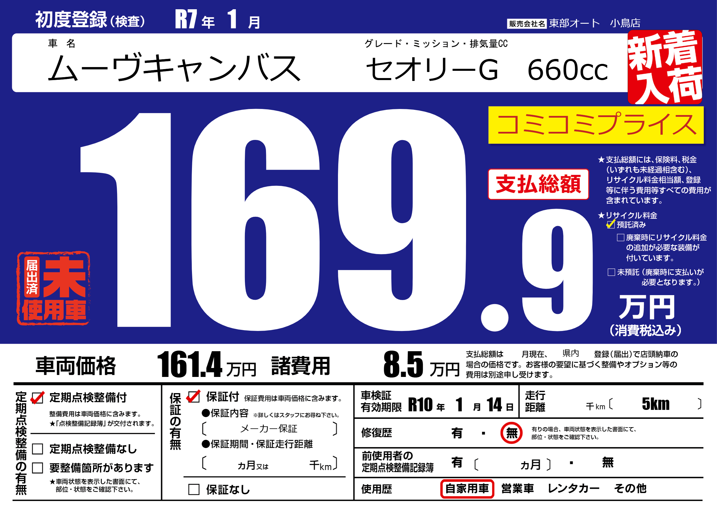 | 車名 | ムーヴキャンバス | グレード ミッション 排気量 |
