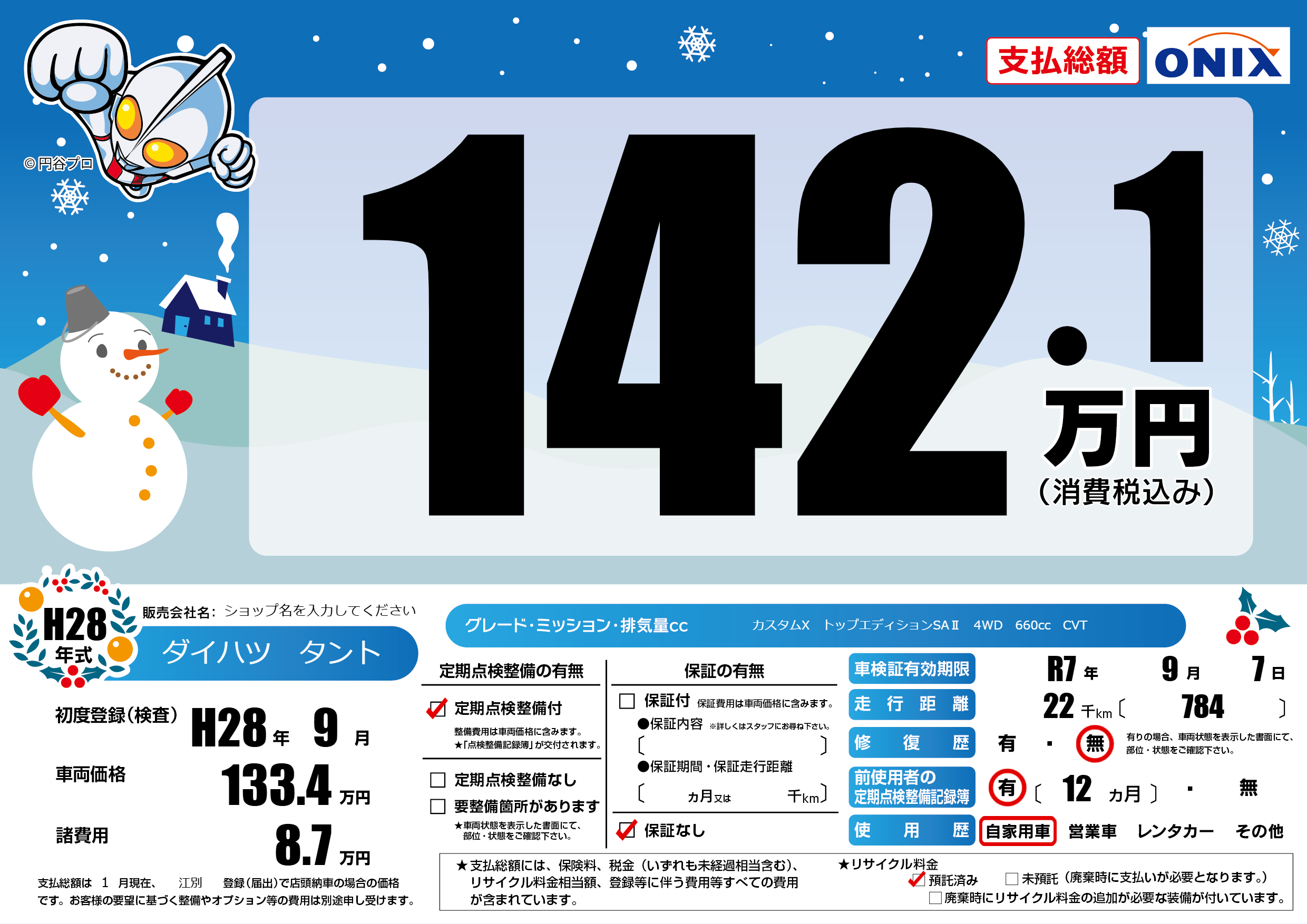 | 車検制限 | R7年 9月 7日 | ||