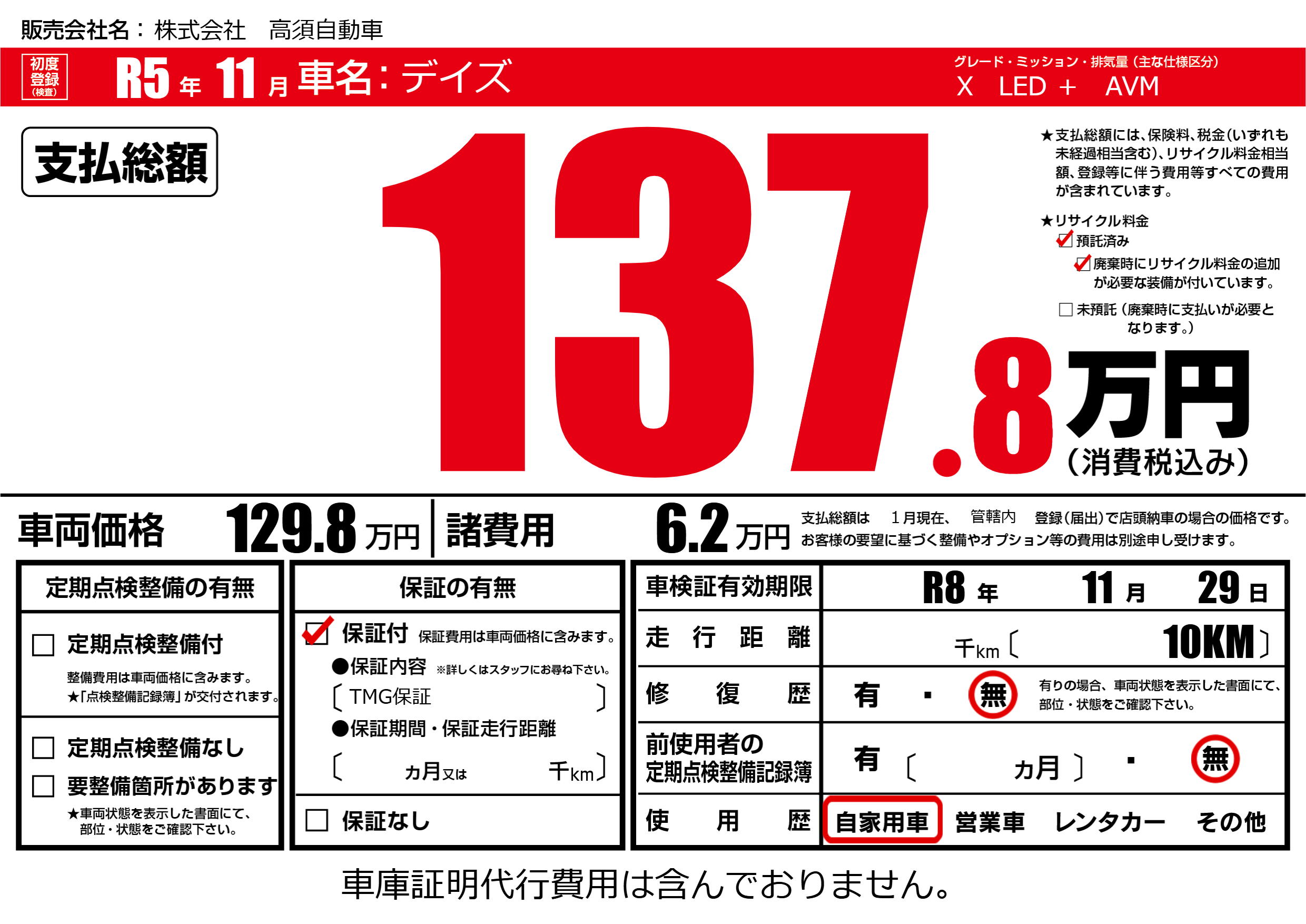 保証付き 保証内容(TMG保証) ---ヶ月または()千kmまで |