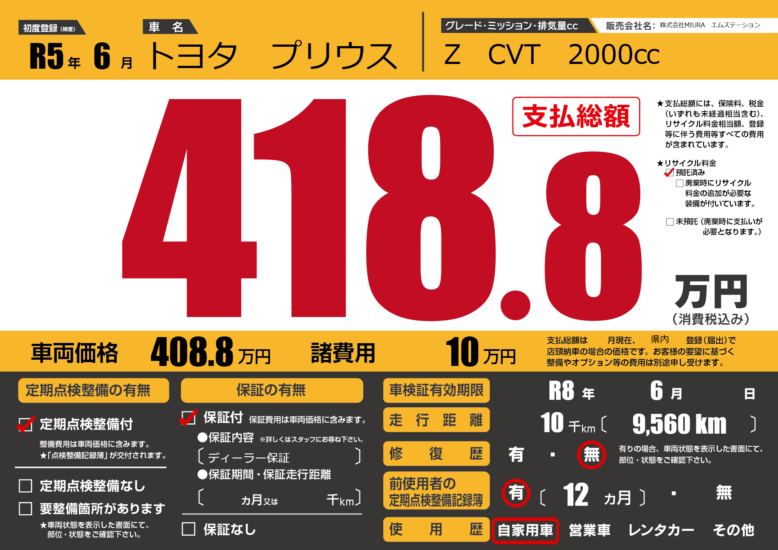 | 車名 | トヨタ プリウス | グレード ミッション 排気量 |