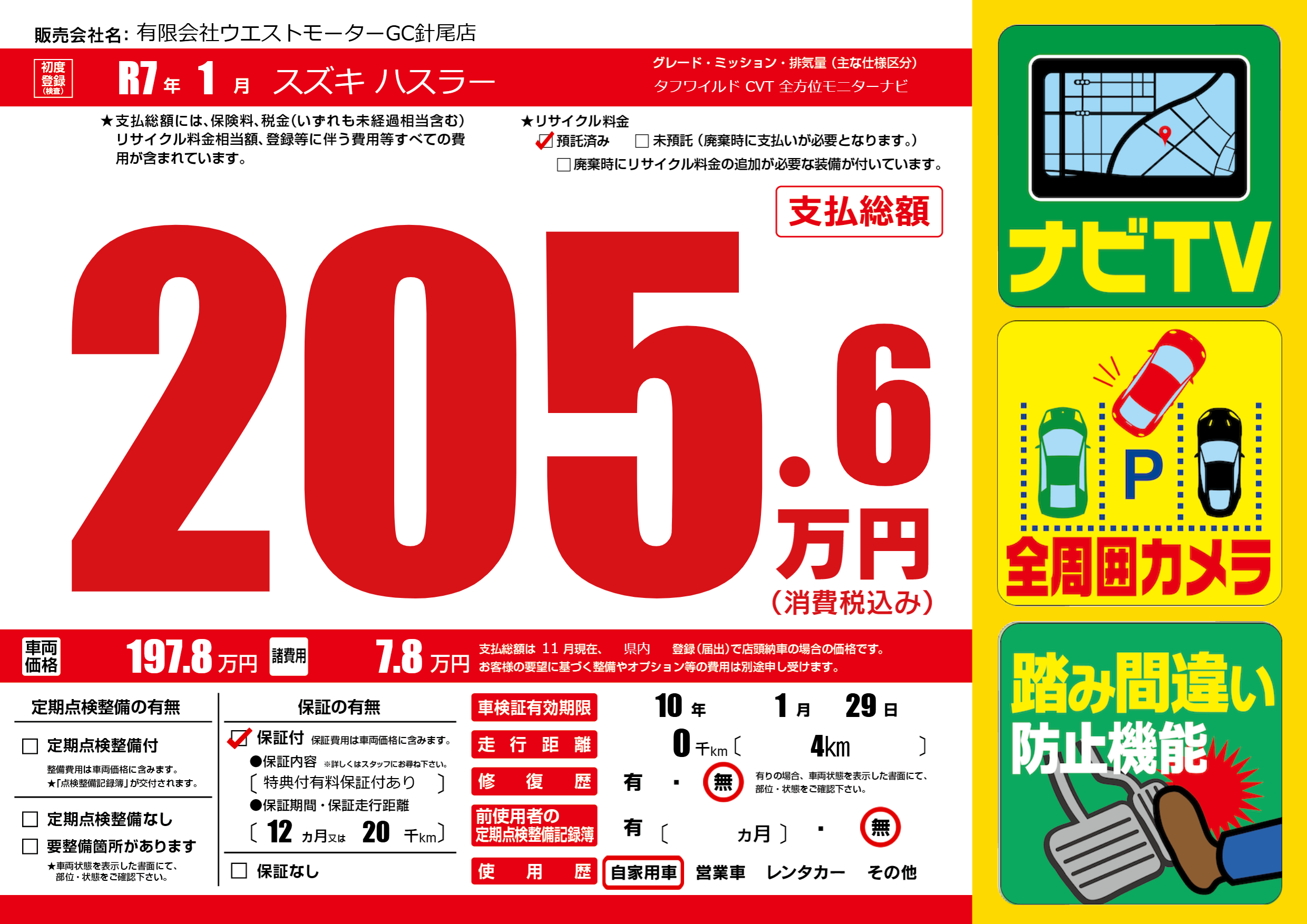 | 走行キロ | - | 初年度登録 | R7年1月 |