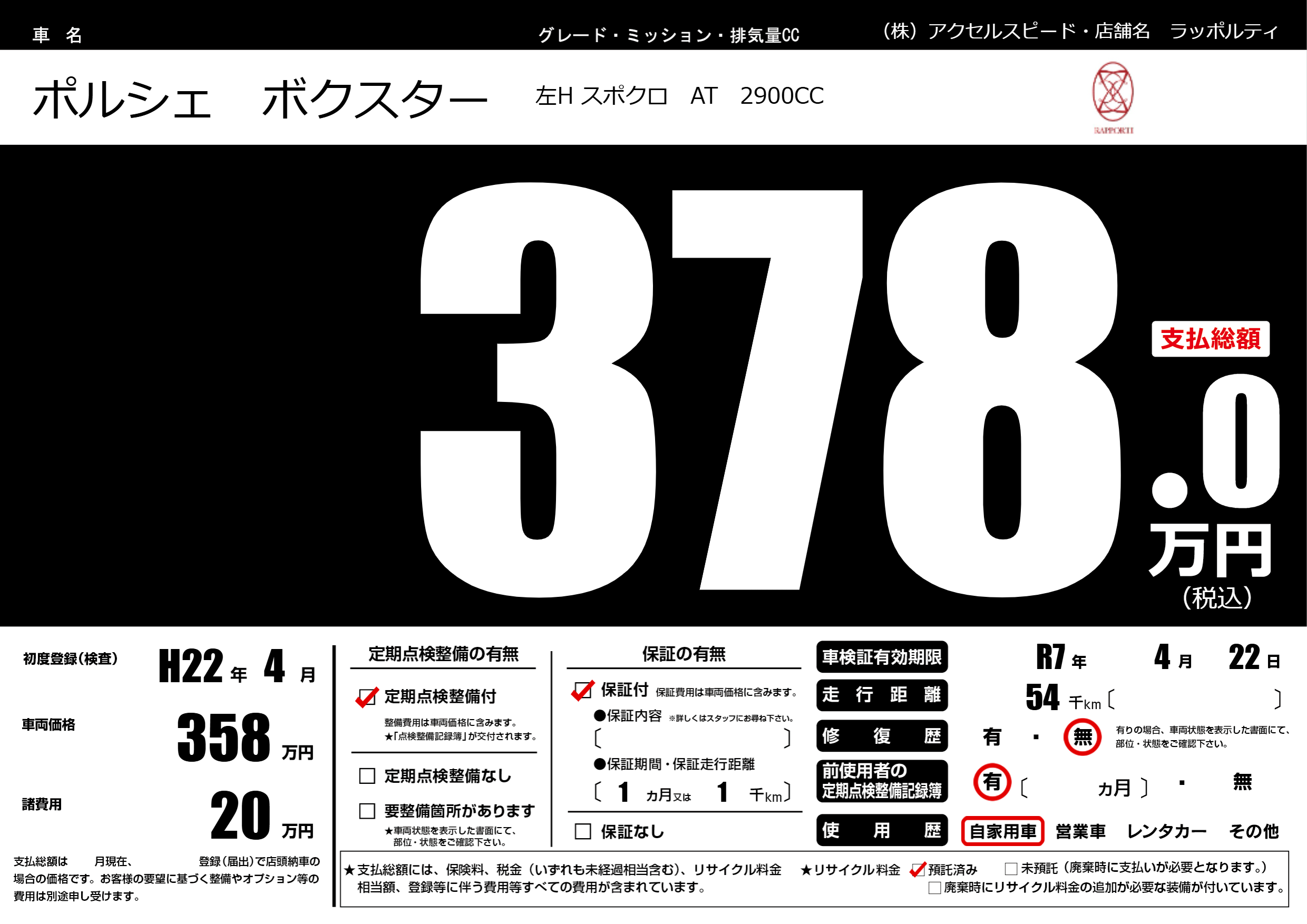 なし | 車検制限 | R7年4月22月 |
