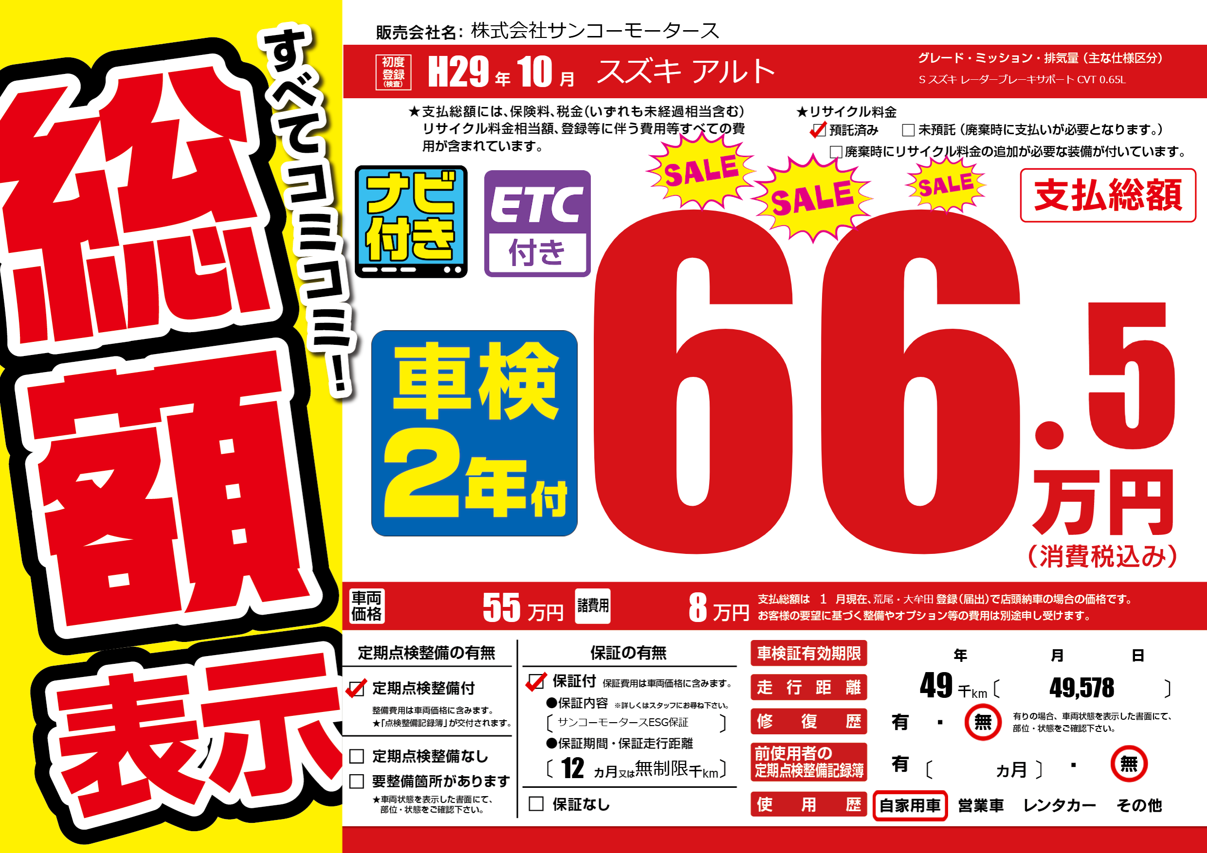 保証内容(サンコーモータースESG保証) 12ヶ月または無制限千km