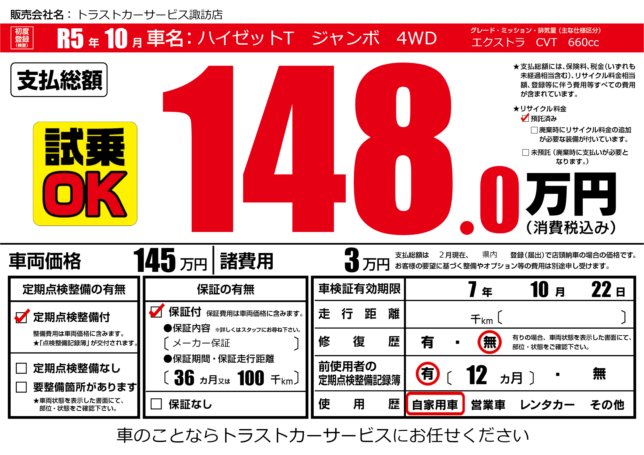 | 車検制限 | 7年 10月 22日 | ||