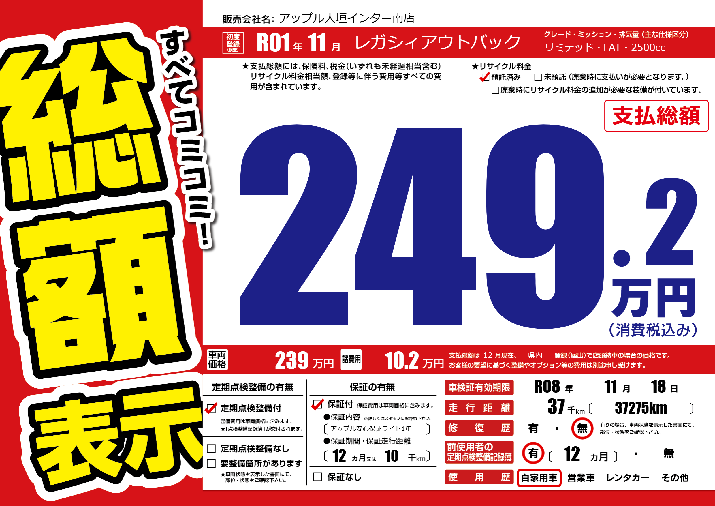 | 定期点検整備 | 定期点検整備あり | ||