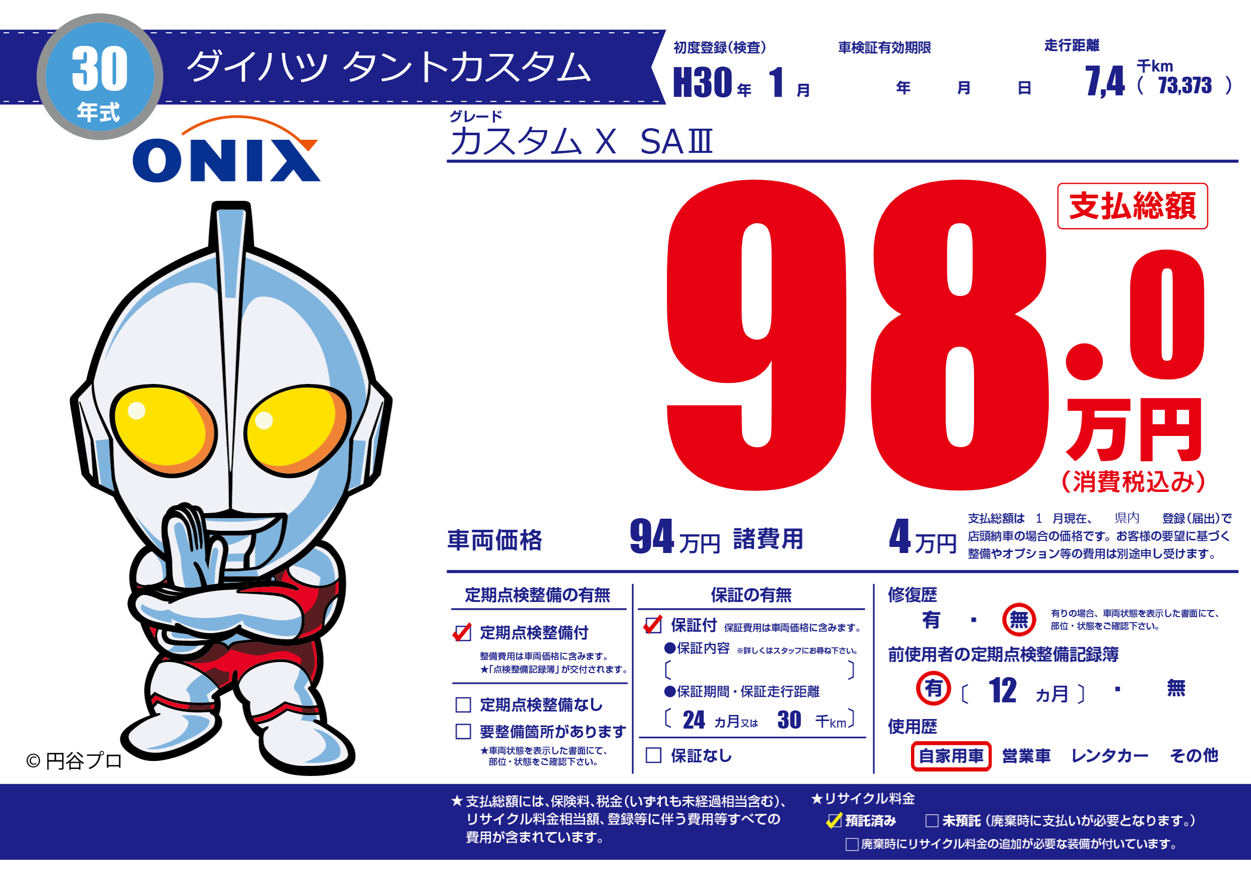 保証付き 保証内容(---) 24ヶ月または(30)千kmまで |