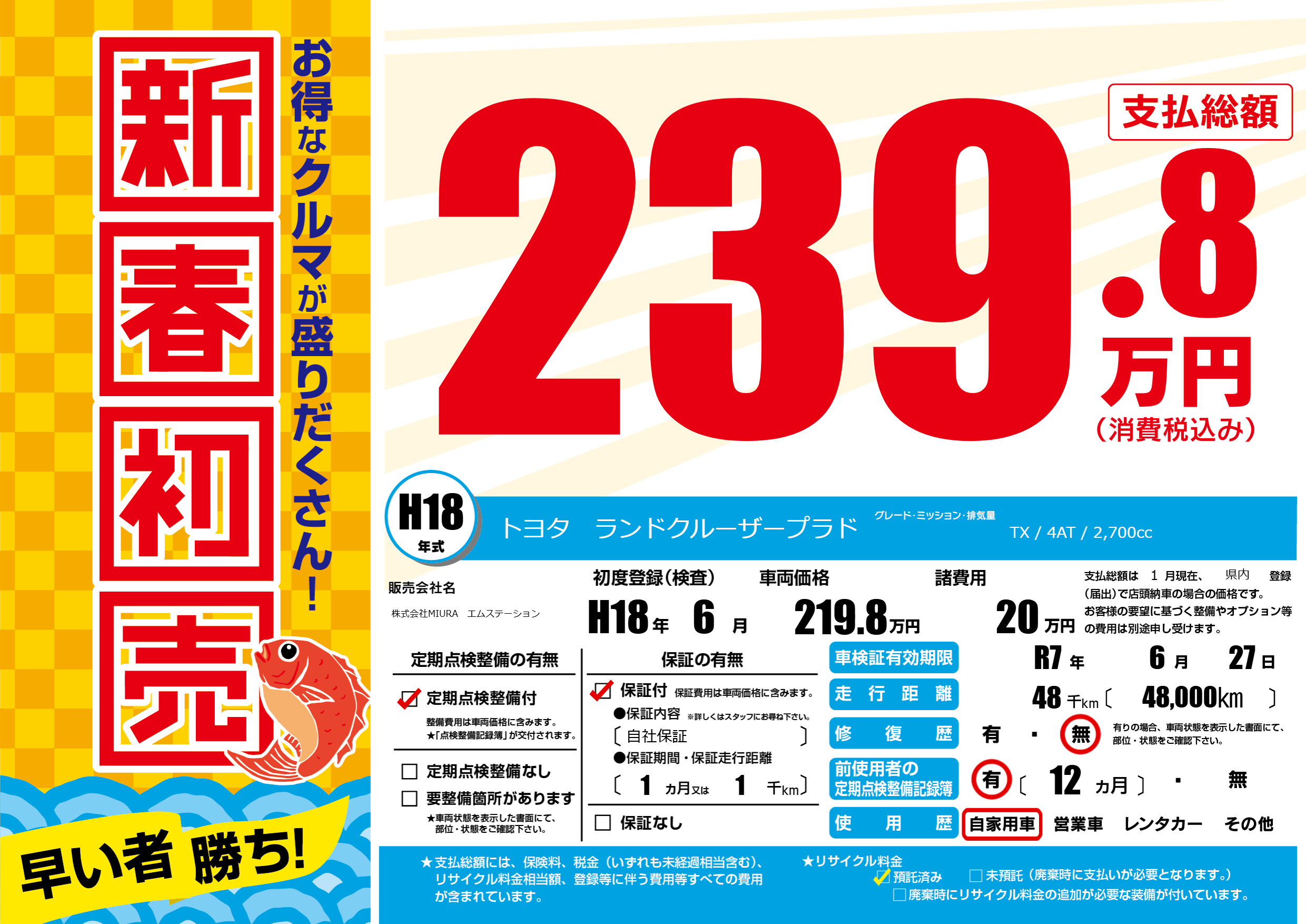 | 車名 | トヨタ ランドクルーザープラド | グレード ミッション 排気量 |