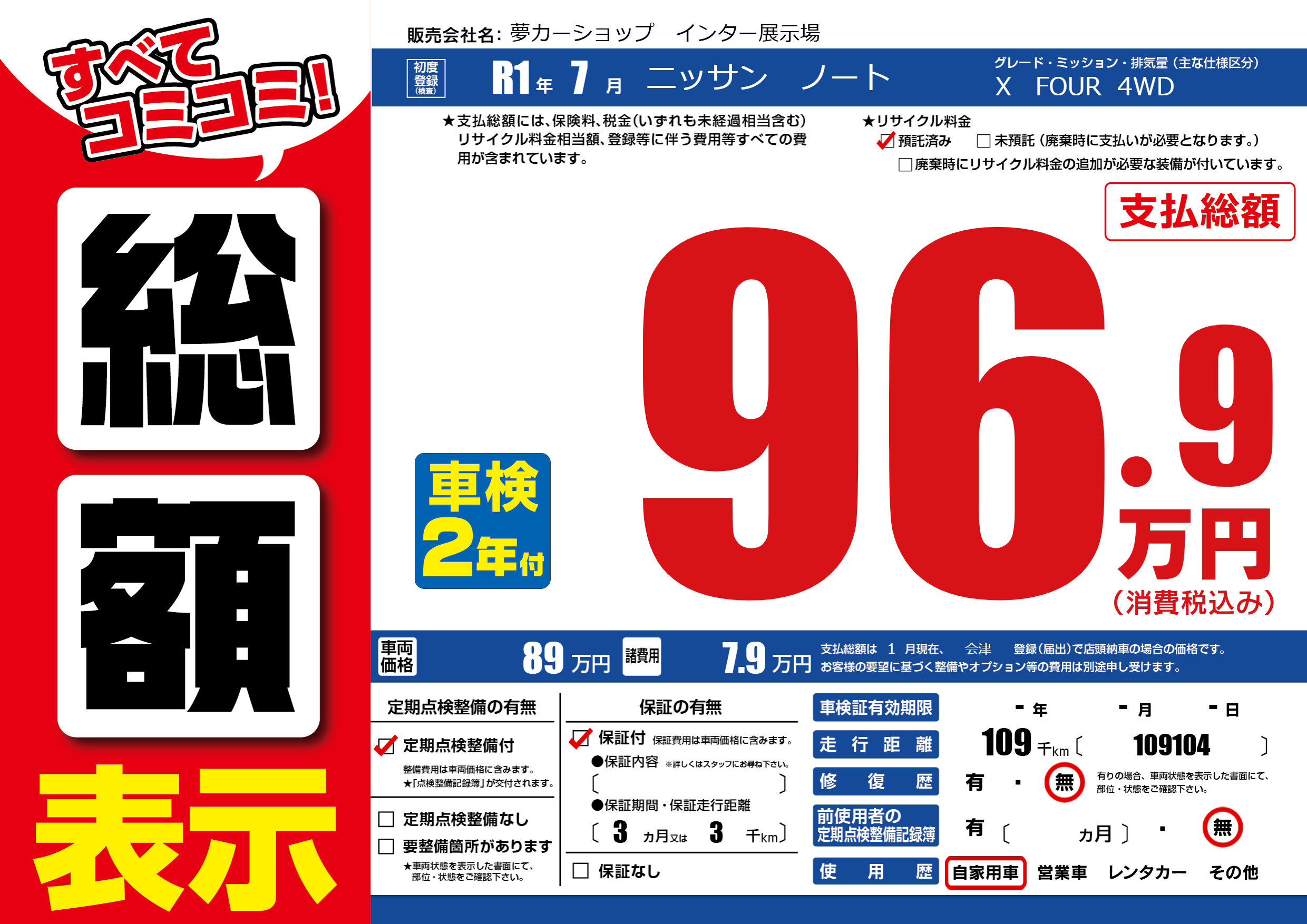 保証付き 保証内容(---) 3ヶ月または(3)千kmまで |