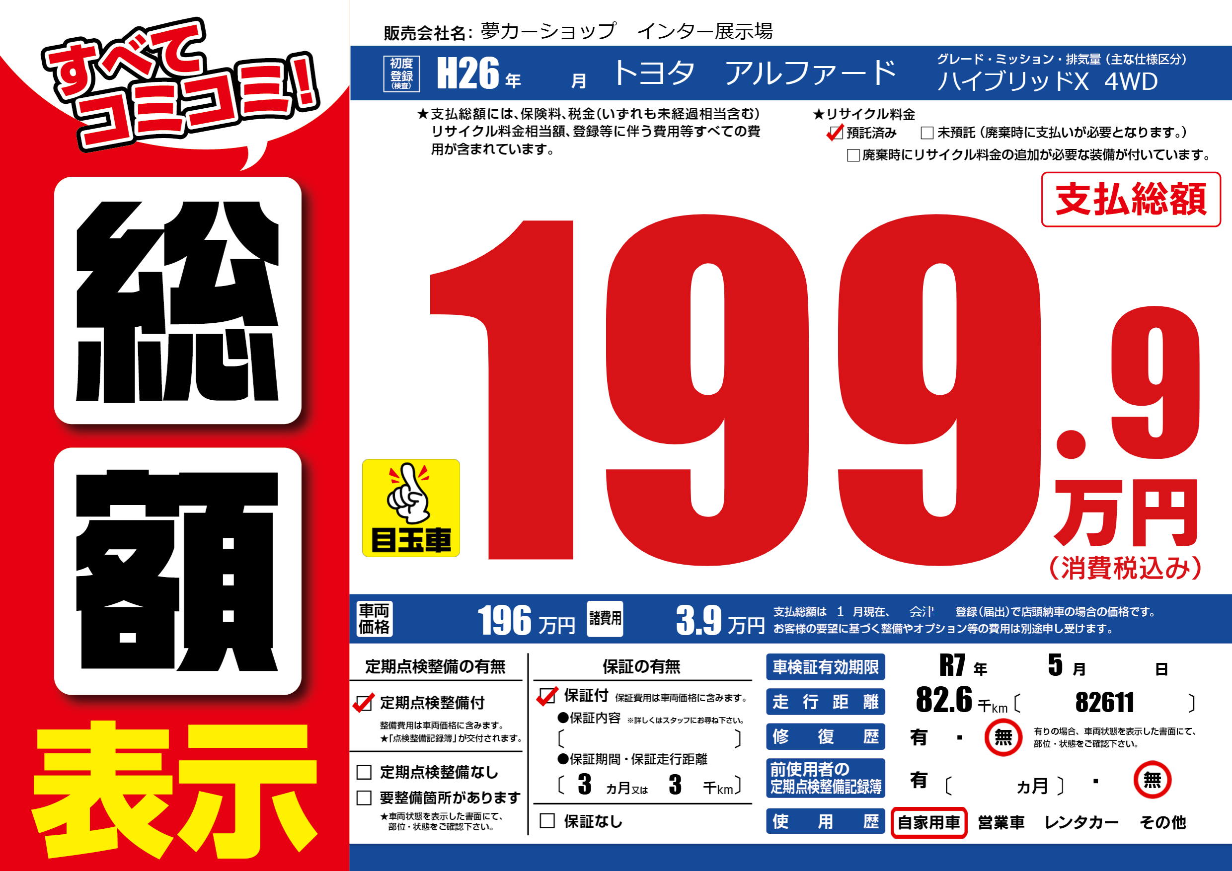 | 走行キロ | 8.2万km | ||