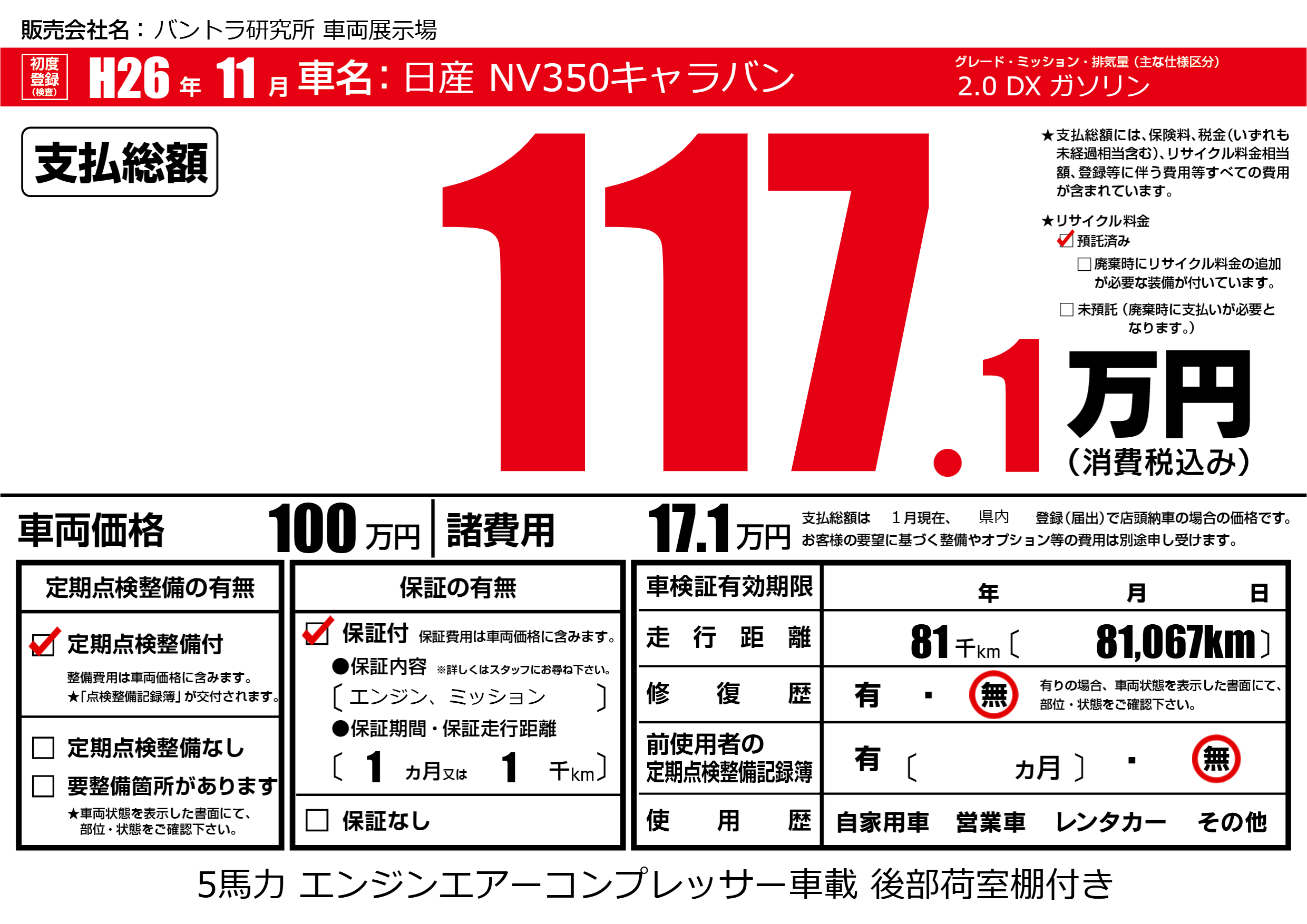 保証内容(エンジン、ミッション) 1ヶ月または1千km