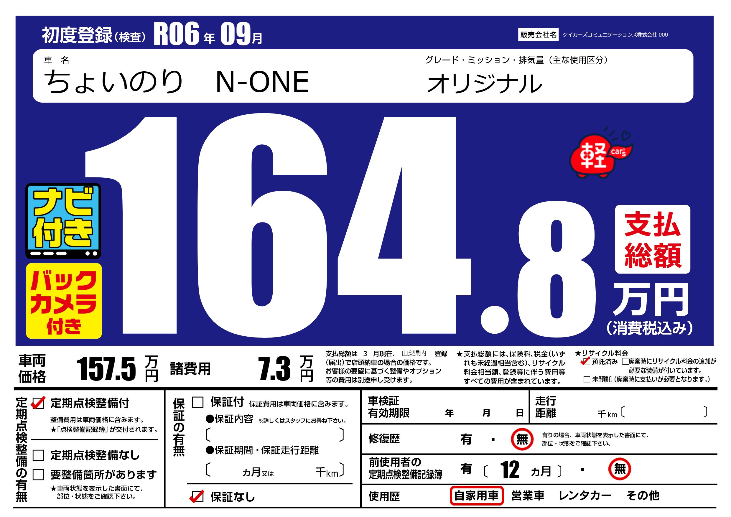 | 定期点検整備 | 定期点検整備あり | ||