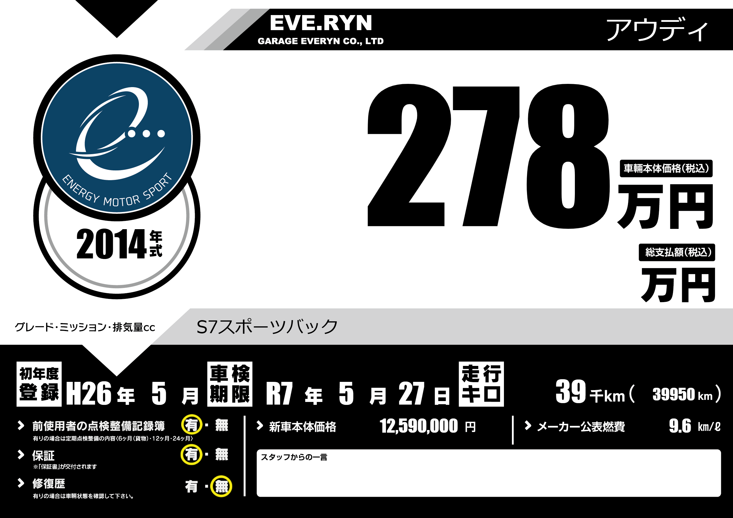 | 車検制限 | R7年 5月 27日 | ||