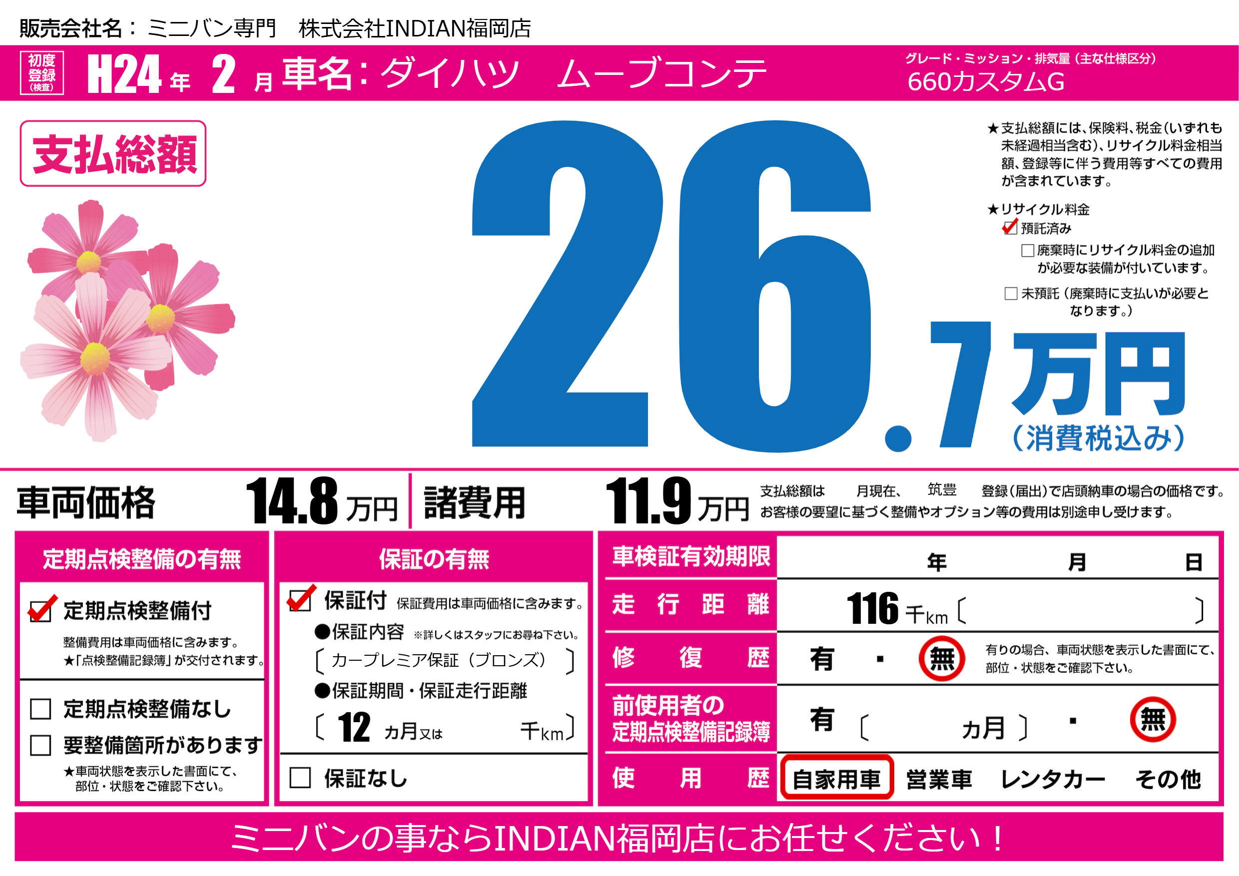 | 初年度登録 | H24年2月 | ||