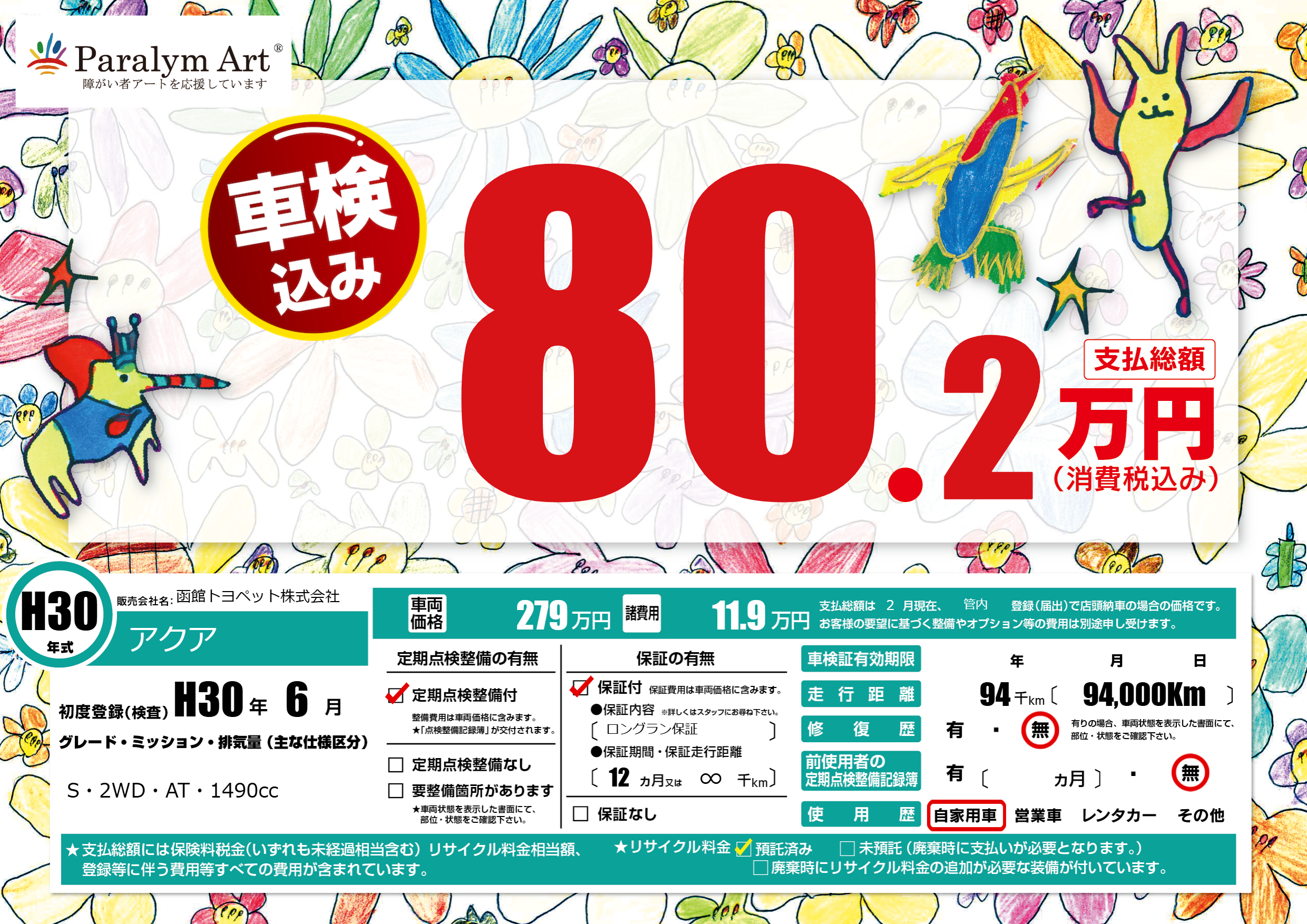 | 走行キロ | 9.4万km | 初年度登録 | H30年6月 |