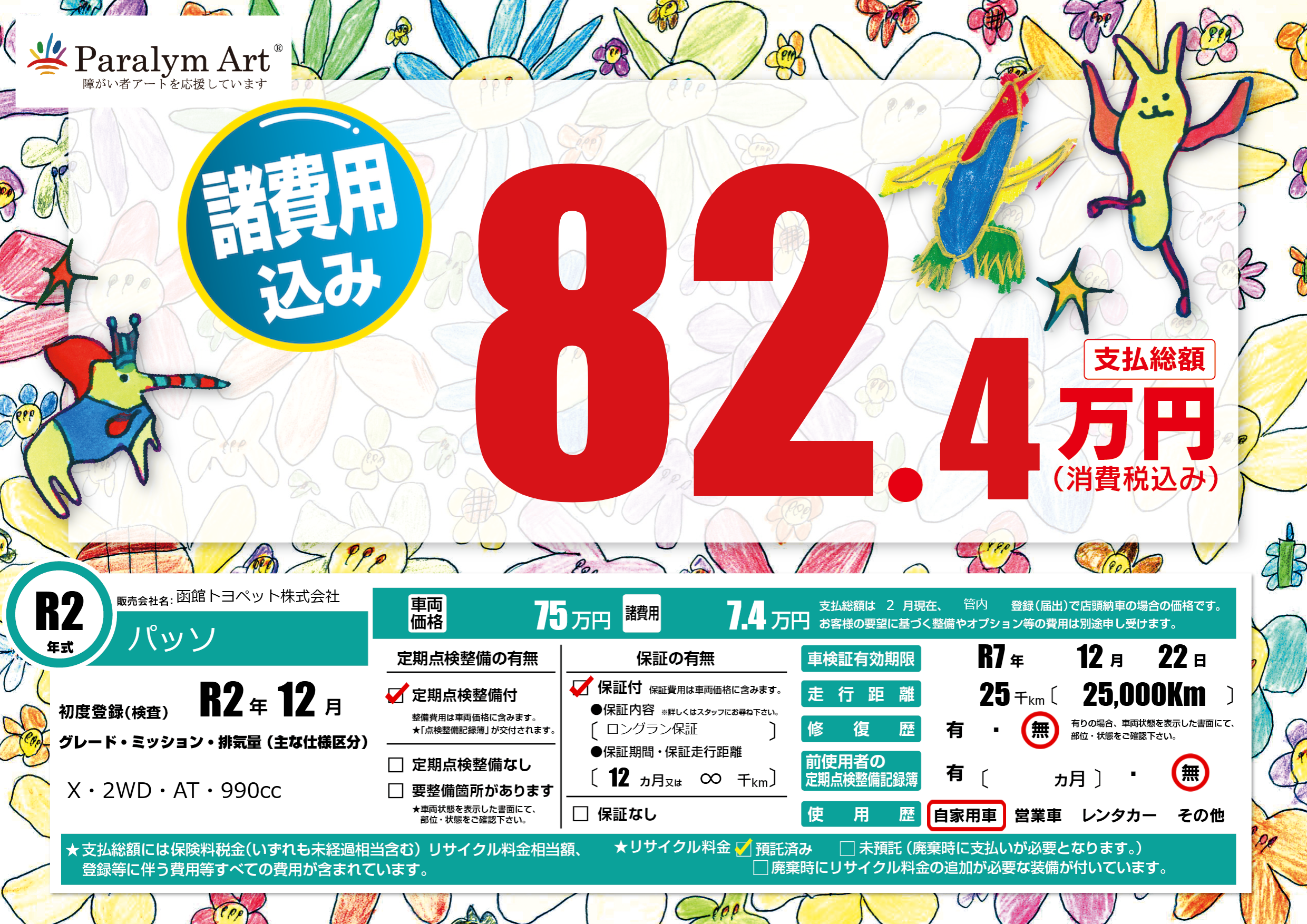 | 車名 | パッソ | グレード ミッション 排気量 |